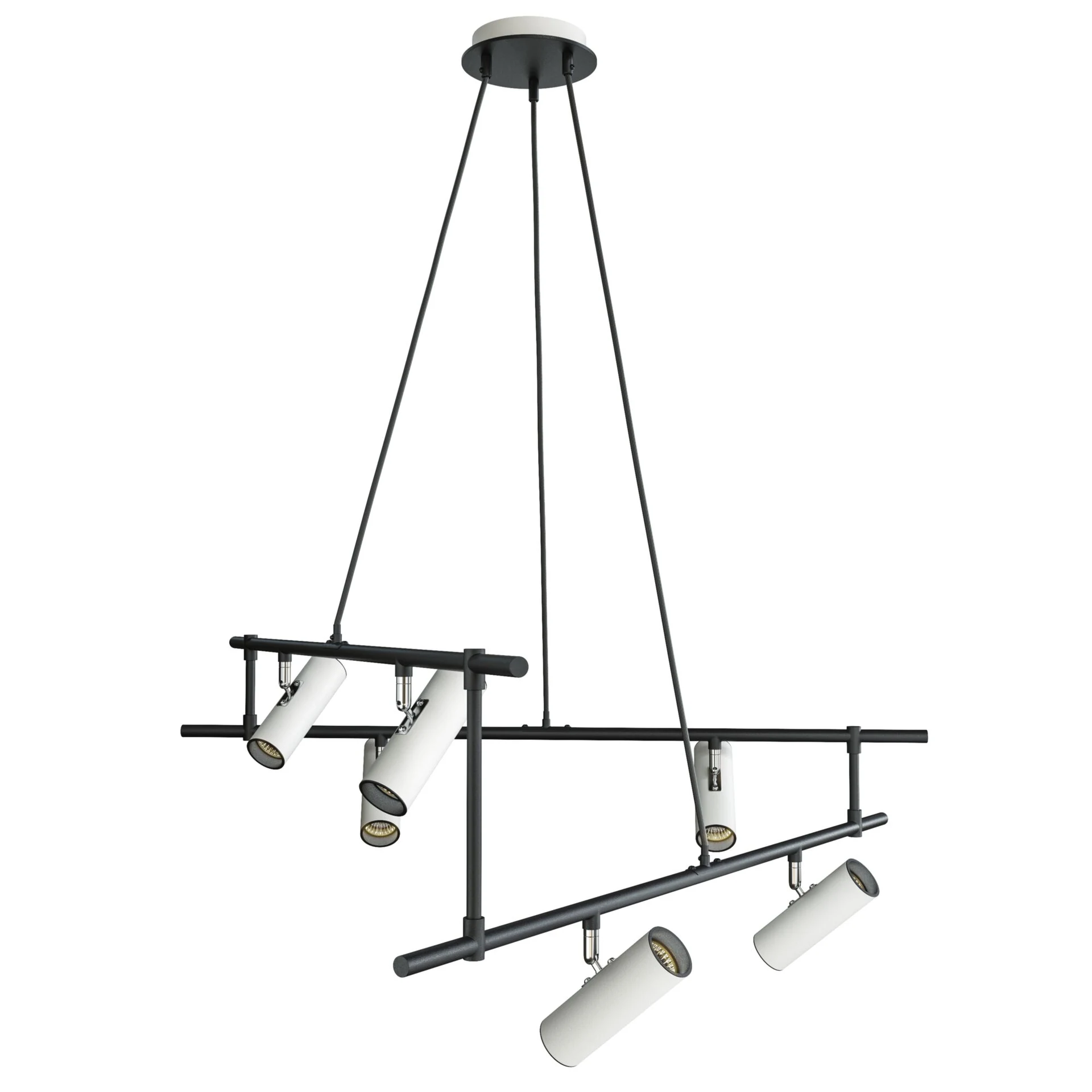 Подвесная люстра Maytoni Rami MOD128PL-12WB от Maytoni, подходит для гостиной. Материал — алюминий, цвет черный, форма плафона — цилиндр. Модель имеет 12 ламп, цоколь GU10, мощность 50 Вт. Крепление — планка. Степень защиты IP20. Габариты: высота 1200 мм, ширина 933 мм. Коллекция Rami.