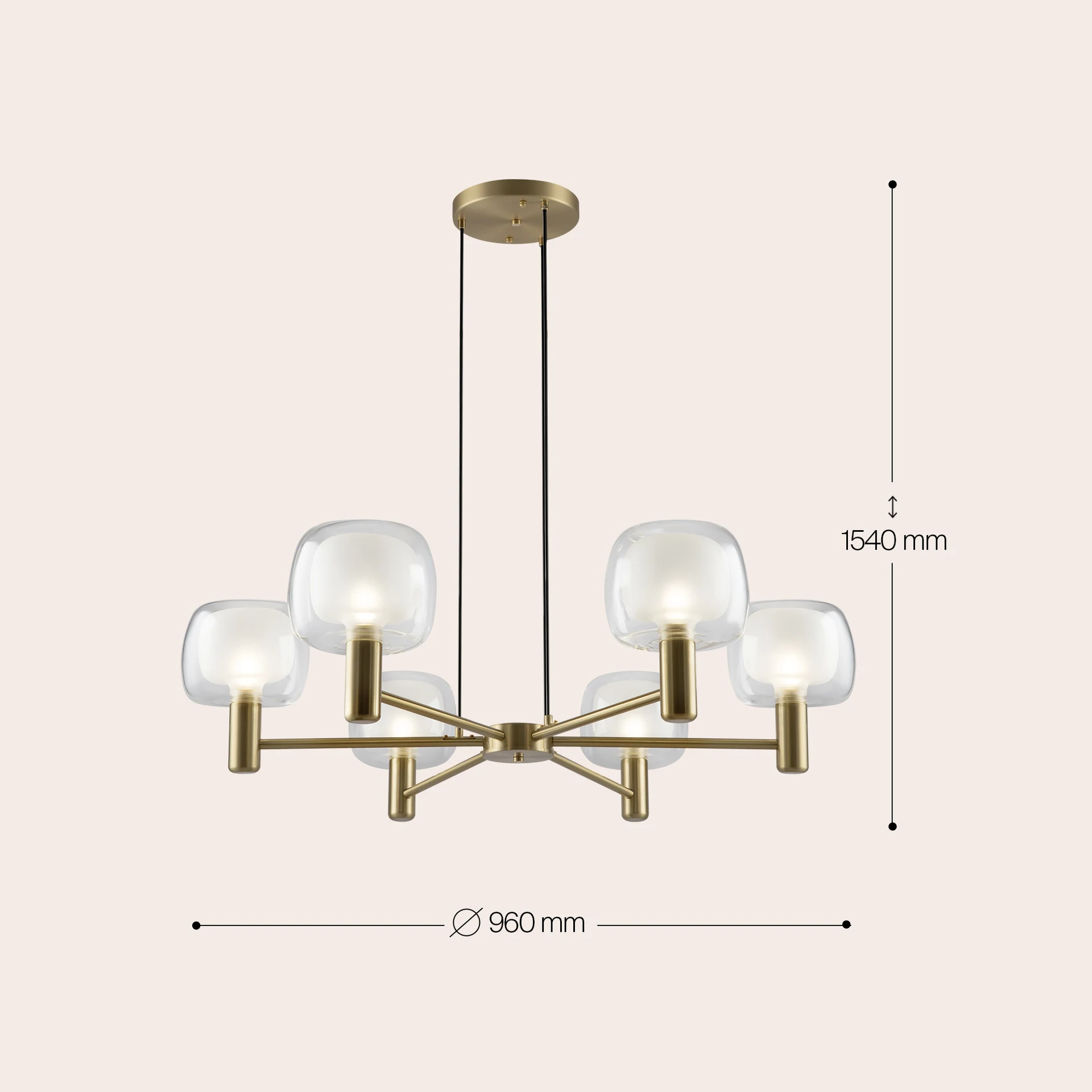 Подвесная люстра Maytoni Vision MOD411PL-06G от Maytoni, подходит для кухни, для гостиной, для спальни, в стиле современный. Материал — алюминий, цвет золото, форма плафона — бочка. Модель имеет 6 ламп, цоколь E14, мощность 60 Вт. Крепление — планка. Габариты: высота 1540 мм, ширина 960 мм, диаметр 960 мм. Коллекция Vision, класс защиты от поражения электрическим током — Class1.