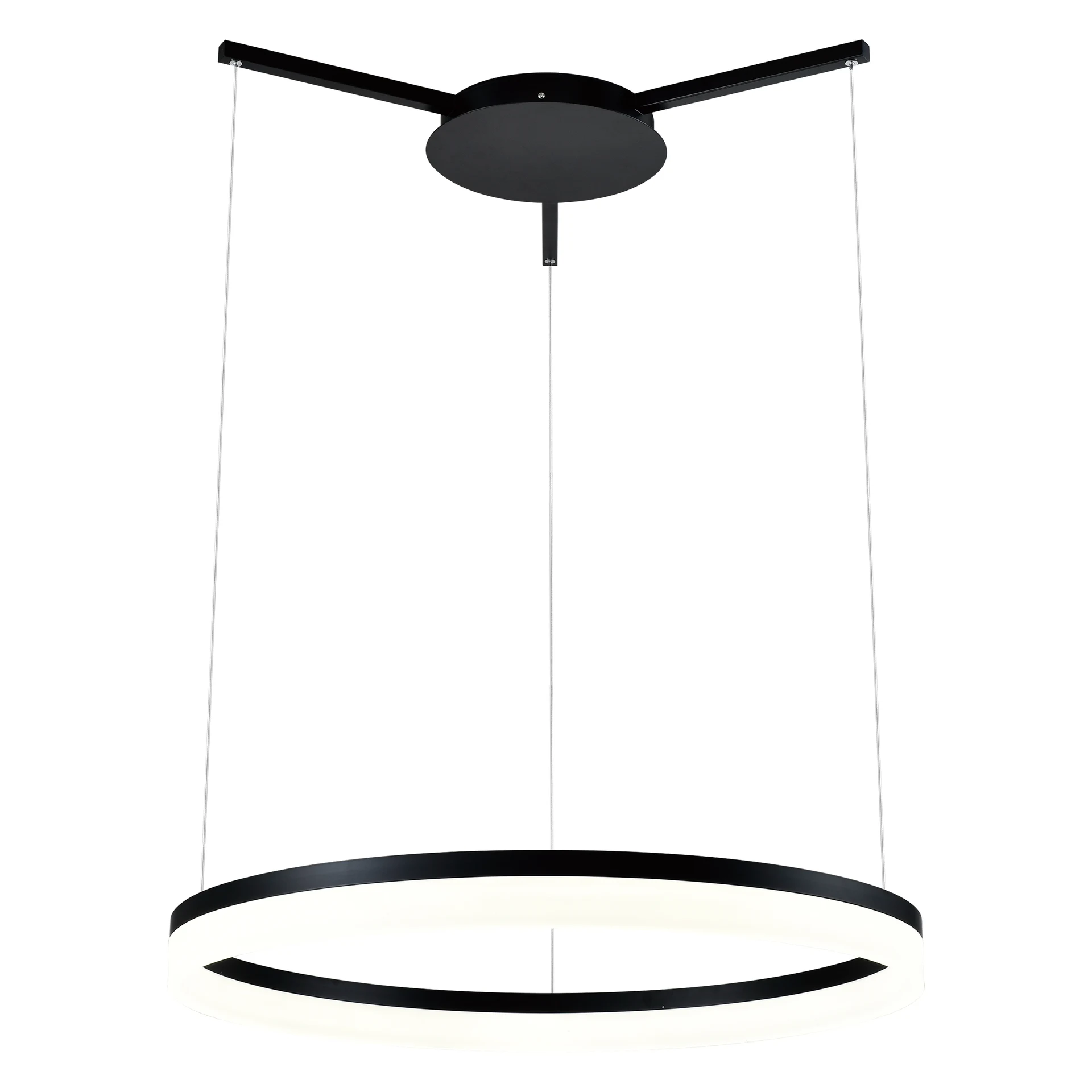 Подвесная светодиодная люстра в стиле хай-тек отлично впишется в современный интерьер. Прекрасно подходит для освещения кухни, зала, гостиной, а также для баров, ресторанов и кафе. Площадь освещения 18 кв. м. Мощность лампы 39 Вт. При монтаже высота люстры регулируется за счет подвесных тросов.