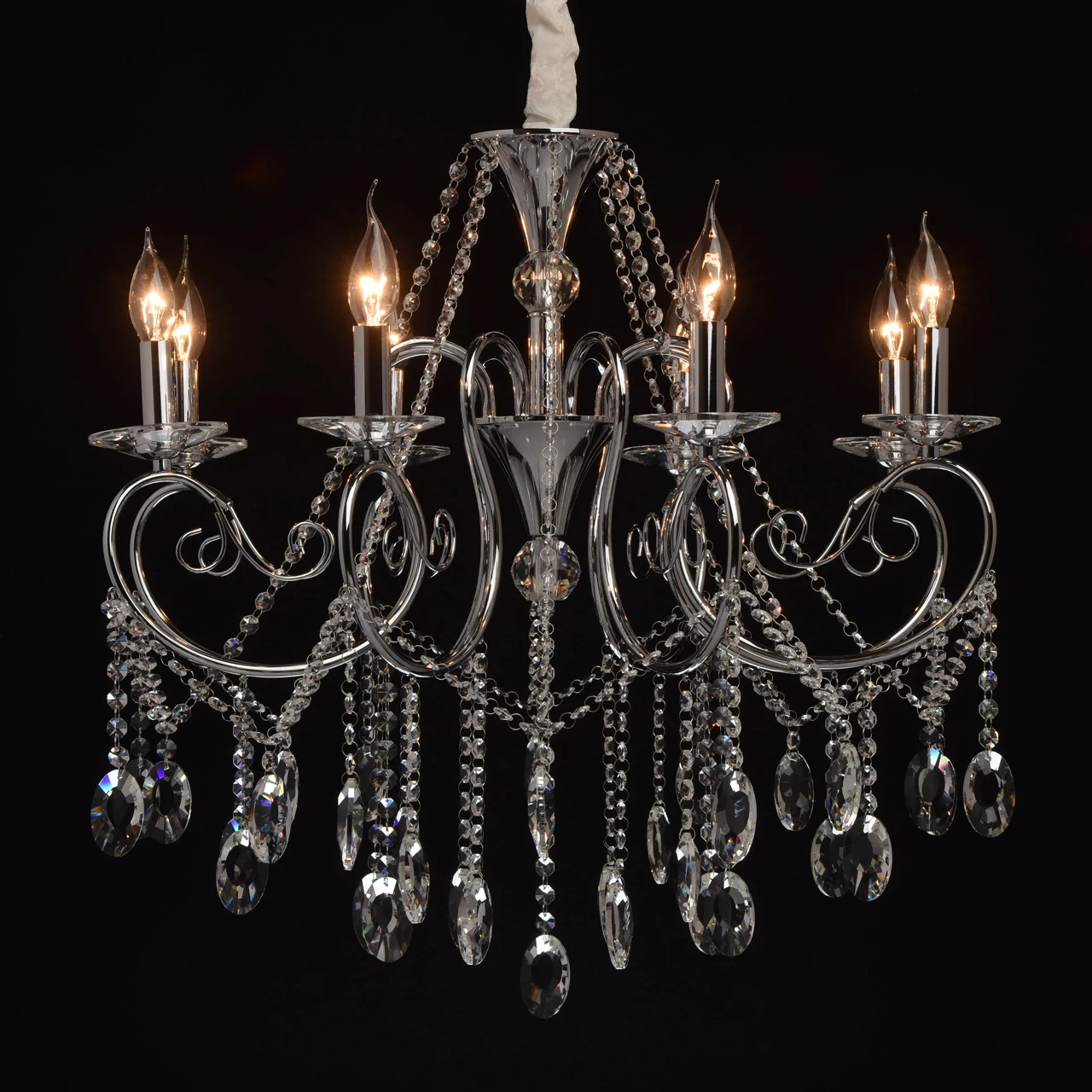 Подвесная хрустальная люстра Адель MW Light 373011808 от MW-Light, подходит для гостиной, в стиле современный. Материал — металл, цвет хром, форма плафона — свечи. Модель имеет 8 ламп, цоколь E14, мощность 40W. Направление света — вверх. Габариты: высота 1030 мм, ширина 720 мм, диаметр 720 мм. Коллекция Адель.