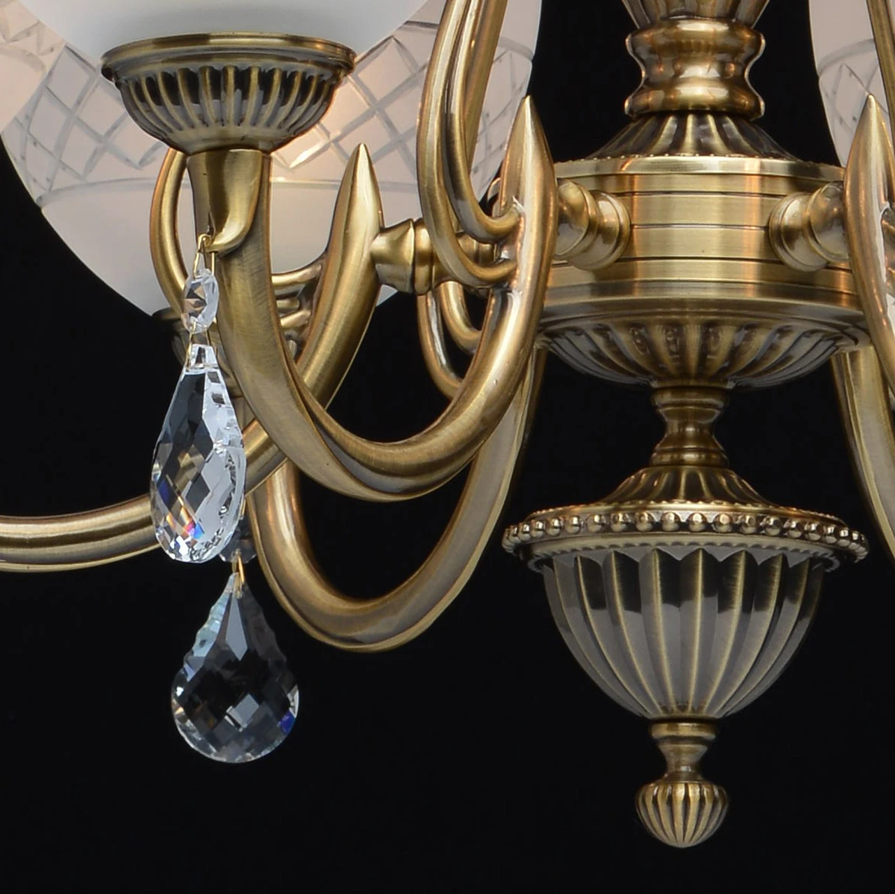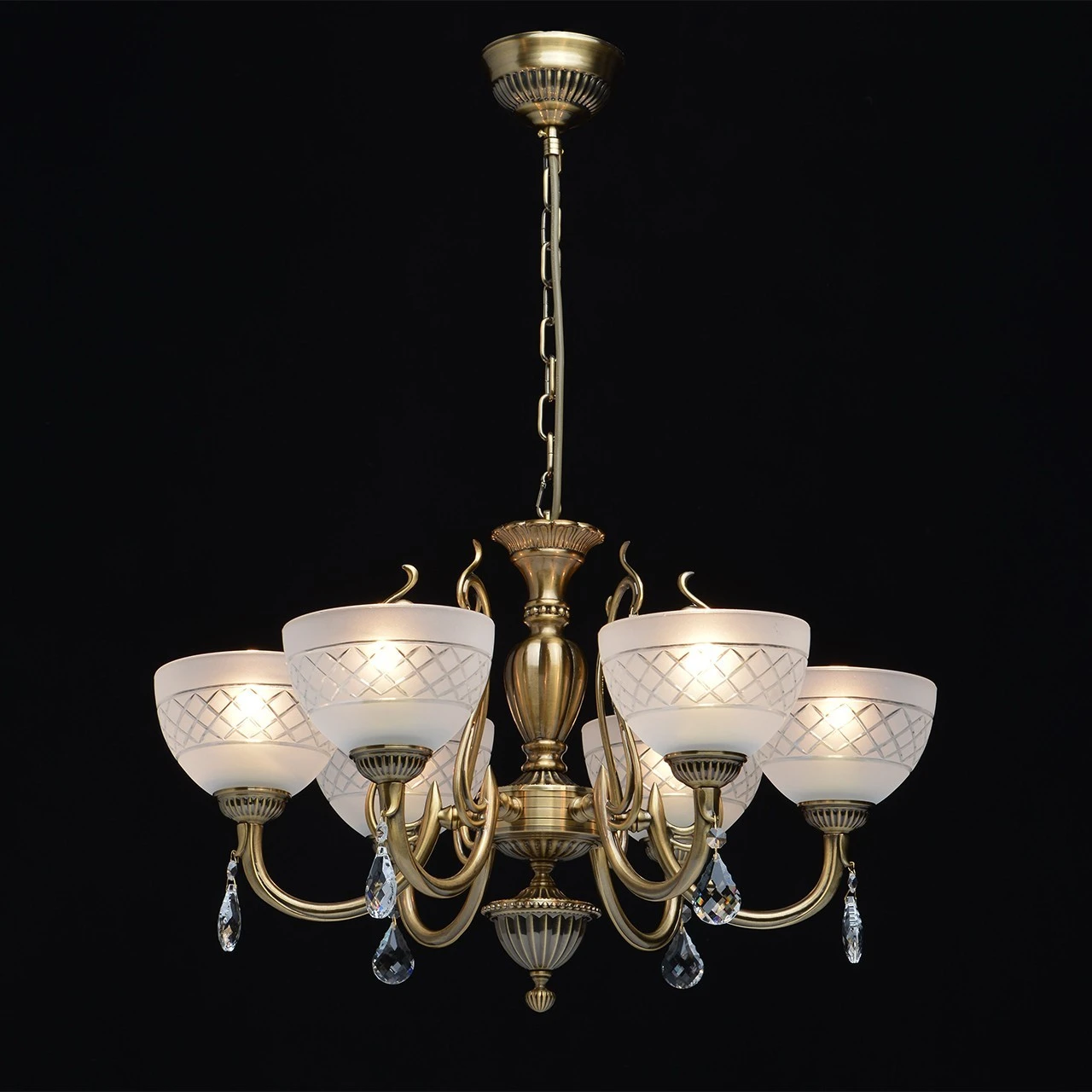Подвесная люстра MW Light Ариадна 450013206 от MW-Light, подходит для гостиной, в стиле классика. Материал — металл, цвет бронза, плафон из стекла, цвет плафона белый, форма плафона — круглый плафон. Модель имеет 6 ламп, цоколь E27, мощность 360 Вт. Направление света — вверх. Степень защиты IP20. Габариты: высота 800 мм, ширина 600 мм, диаметр 600 мм. Декор — хрустальные подвески, коллекция Ариадна.