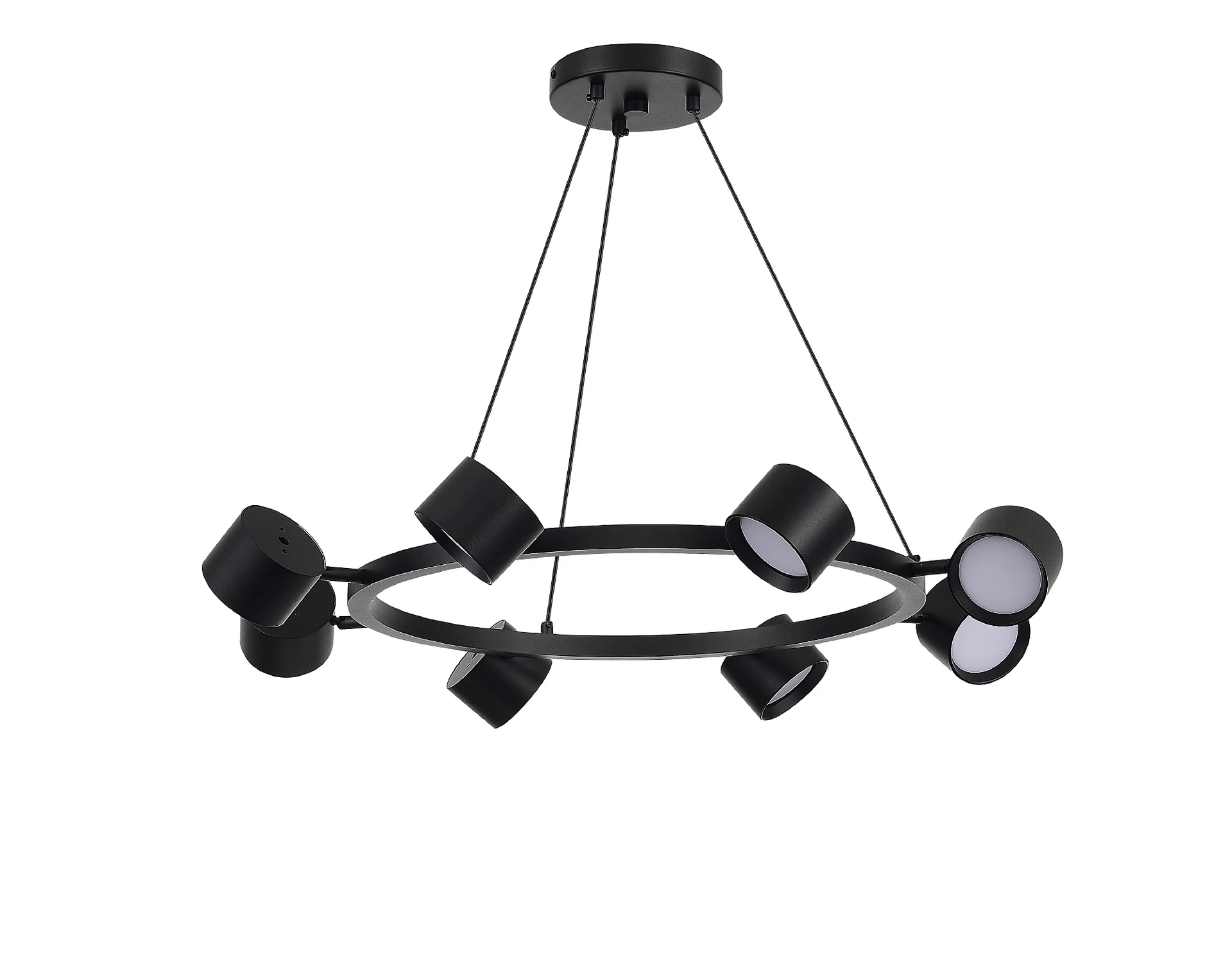 Подвесная люстра MyFar Edda MR2640-8P от MyFar — люстры. Материал — металл, цвет черный, форма плафона — круглые. Модель имеет 8 ламп, цоколь GX53, мощность 72 Вт, площадь освещения до 15 кв. м. Крепление — планка. Степень защиты IP20. Габариты: высота 1105 мм, ширина 750 мм, диаметр 750 мм. Коллекция Edda.