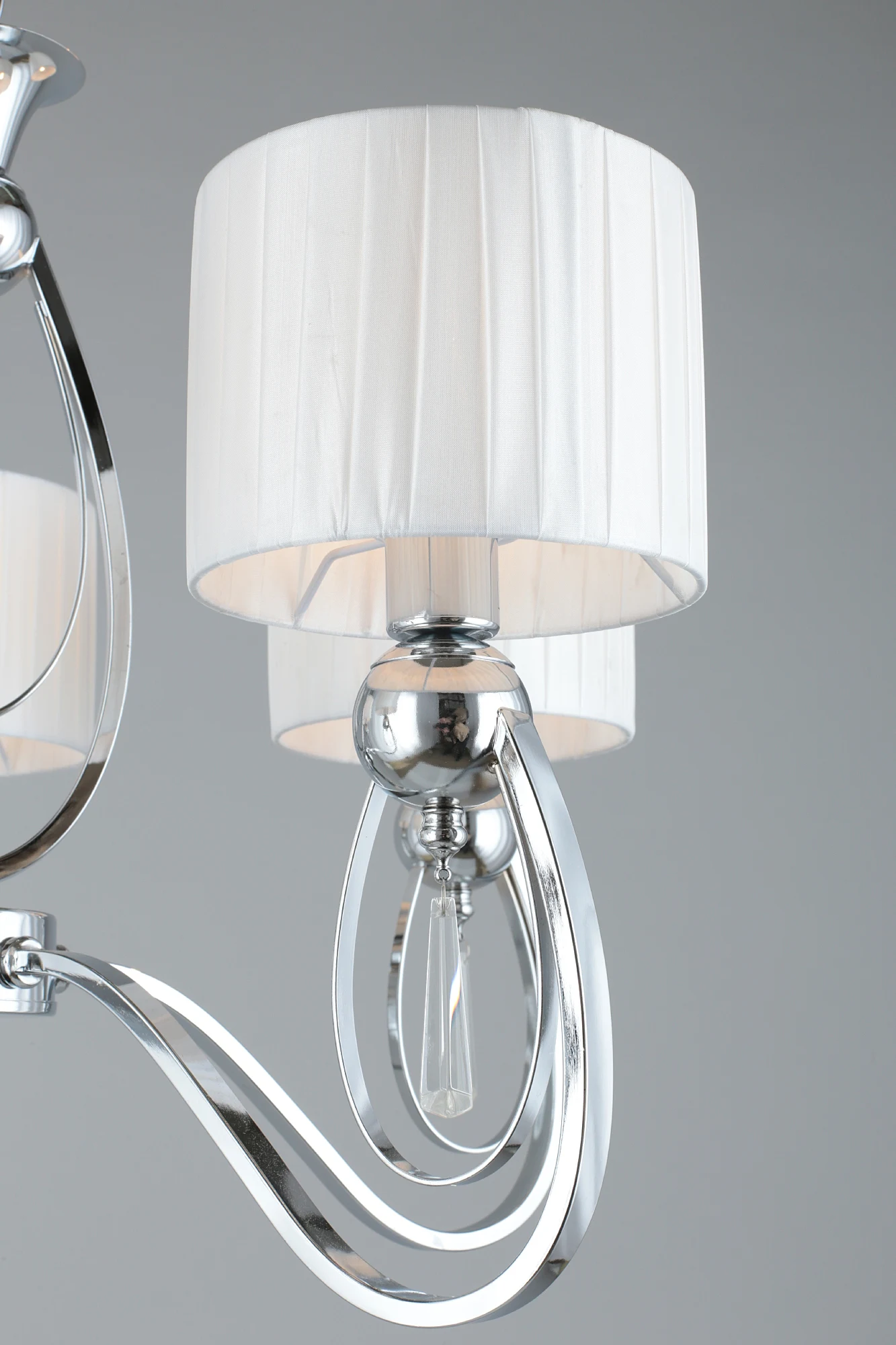 Подвесная люстра Omnilux Mellitto OML-63803-05 от Omnilux, подходит для гостиной, для спальни, в стиле классика. Материал — металл, цвет хром, плафон из ткань, цвет плафона белый, форма плафона — цилиндр. Модель имеет 5 ламп, цоколь E14, мощность 200 Вт. Габариты: высота 900 мм, ширина 600 мм, диаметр 600 мм. Декор — хрустальные подвески.