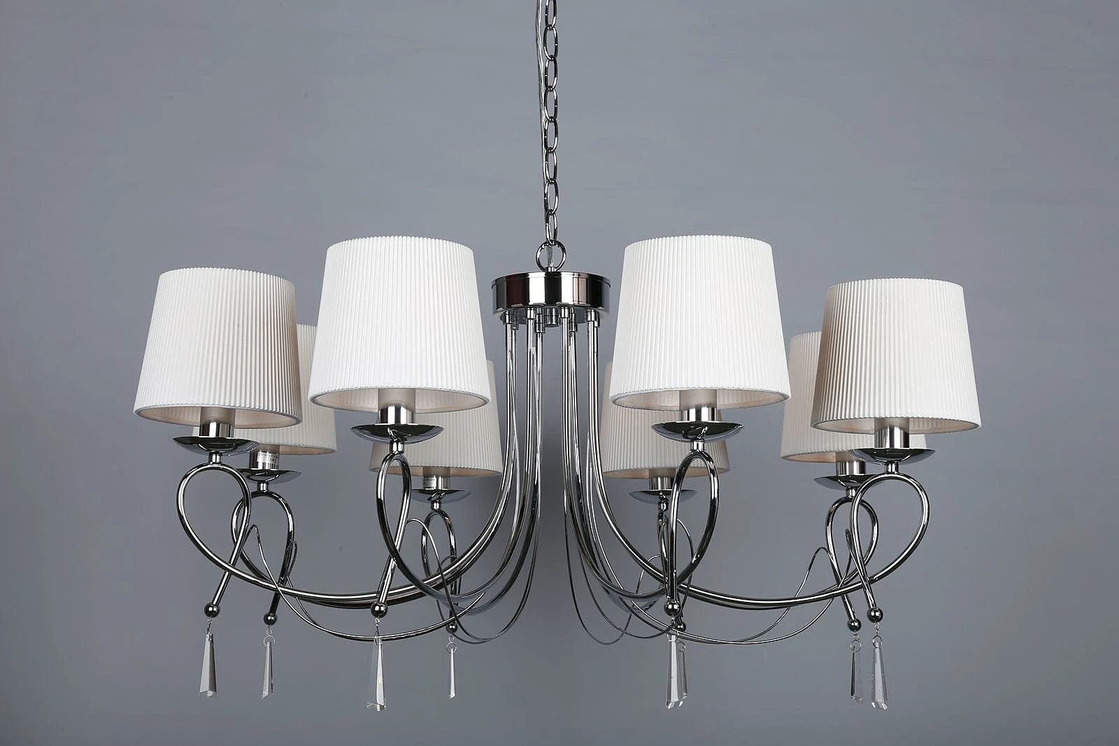 Подвесная люстра Omnilux Sondrio OML-61503-08 от Omnilux, подходит для гостиной, для спальни, в стиле арт-деко. Материал — металл, цвет хром, плафон из ткань, цвет плафона белый, форма плафона — круглый абажур. Модель имеет 8 ламп, цоколь E14, мощность 40W. Степень защиты IP20. Габариты: высота 1200 мм, ширина 850 мм, диаметр 850 мм. Декор — хрустальные подвески, коллекция Sondrio.