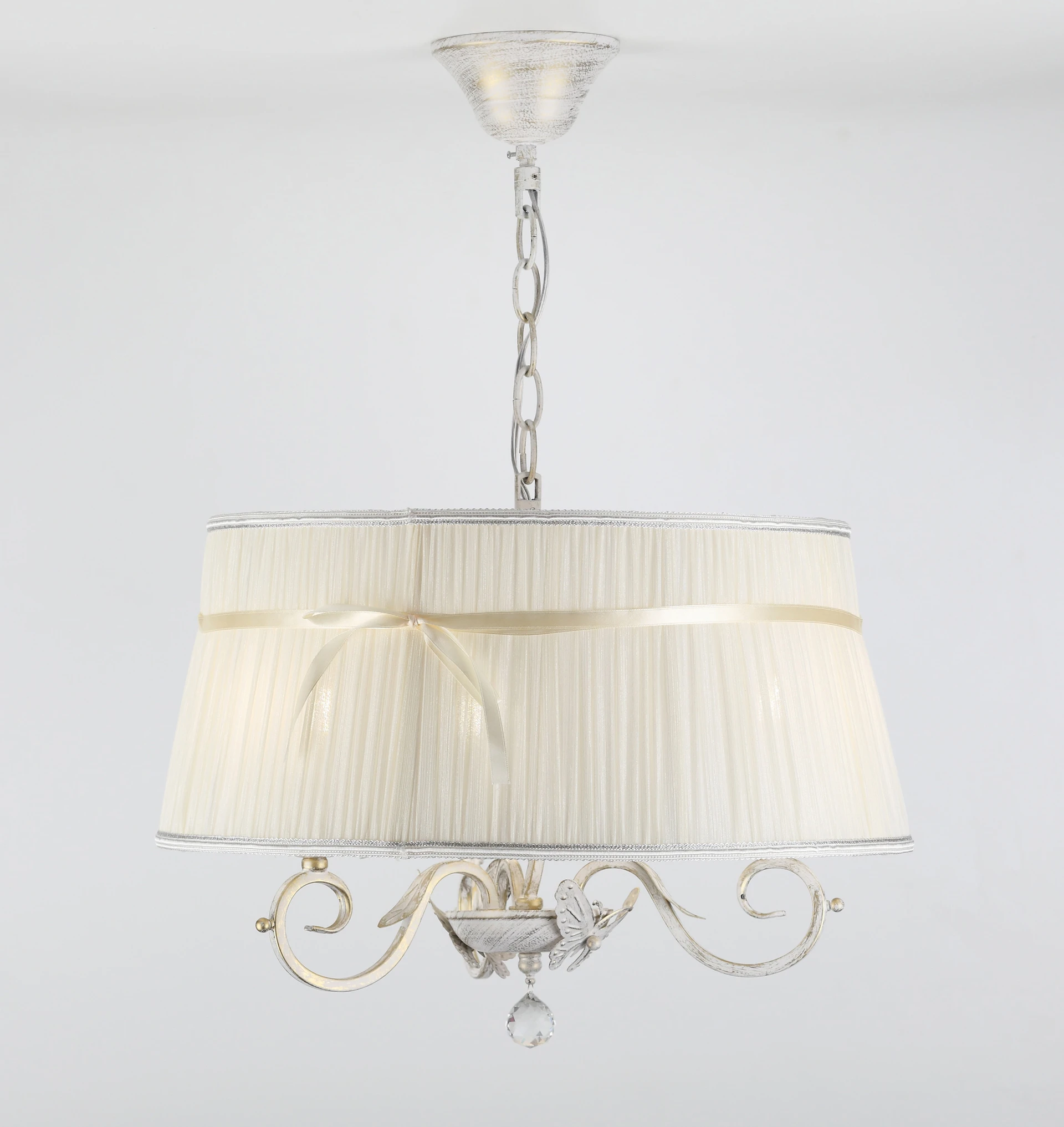 Подвесная люстра Rivoli Farfalla 2014-203 от Rivoli, подходит для спальни, в стиле прованс. Материал — пластик, цвет белый, плафон из ткань, форма плафона — круглый абажур. Модель имеет 3 лампы, цоколь E14, мощность 43 Вт. Направление света — вверх. Габариты: высота 320 мм, ширина 460 мм. Декор — ленточки, коллекция Farfalla.