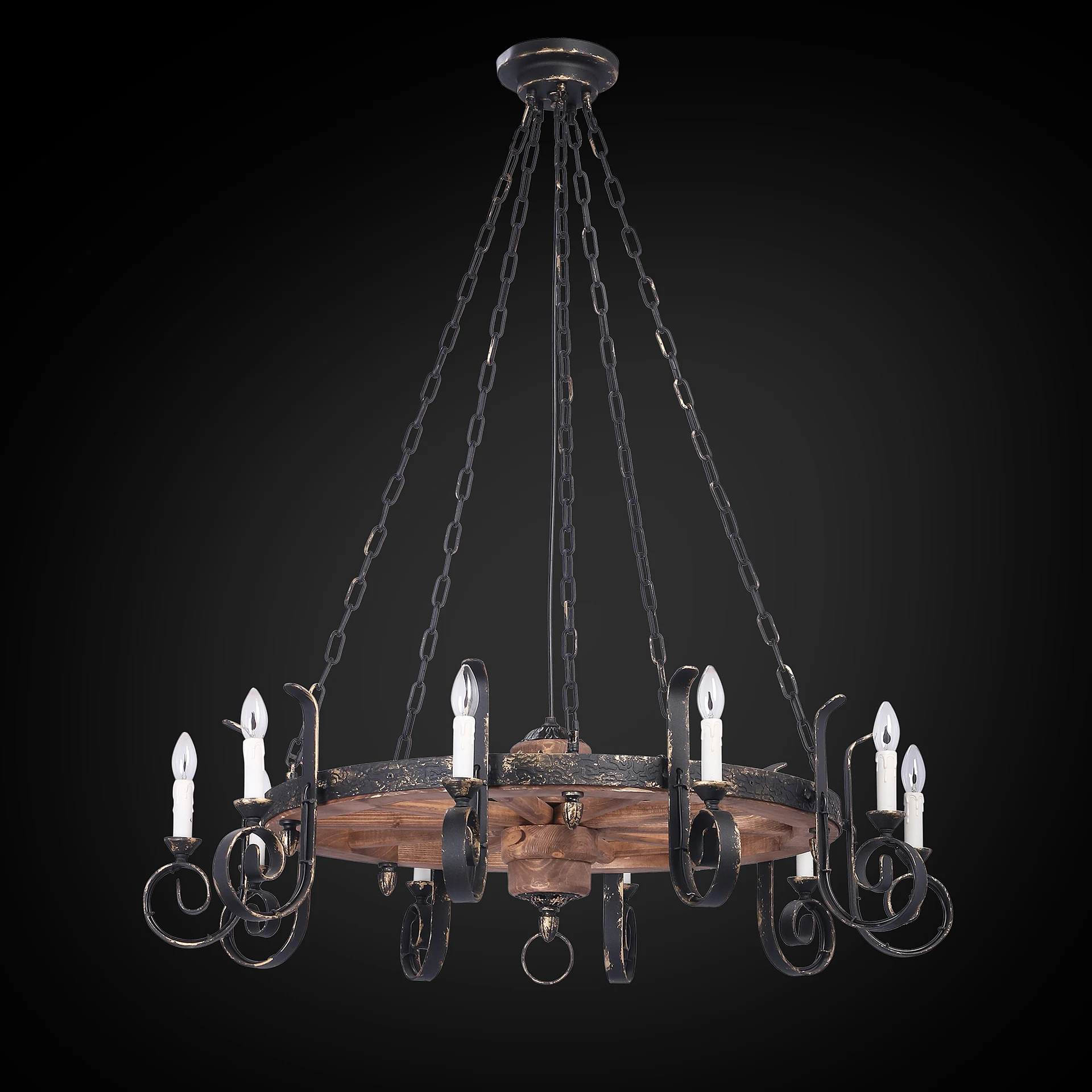 Подвесная люстра Розанофф Gvinevra RS181/10 от Розанофф, подходит для гостиной, в стиле кованые, кантри. Материал — металл, цвет дерево, форма плафона — круглые. Модель имеет 10 ламп, цоколь E14, мощность 60 Вт. Направление света — вверх, крепление — крюк. Габариты: высота 1200 мм, ширина 800 мм, диаметр 800 мм. Коллекция Gvinevra.