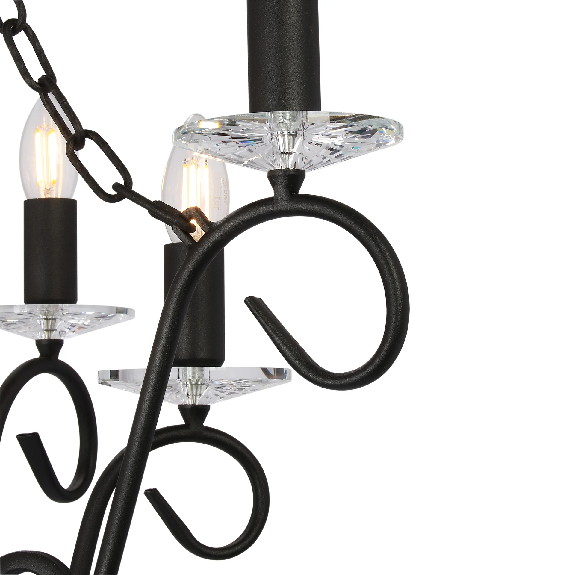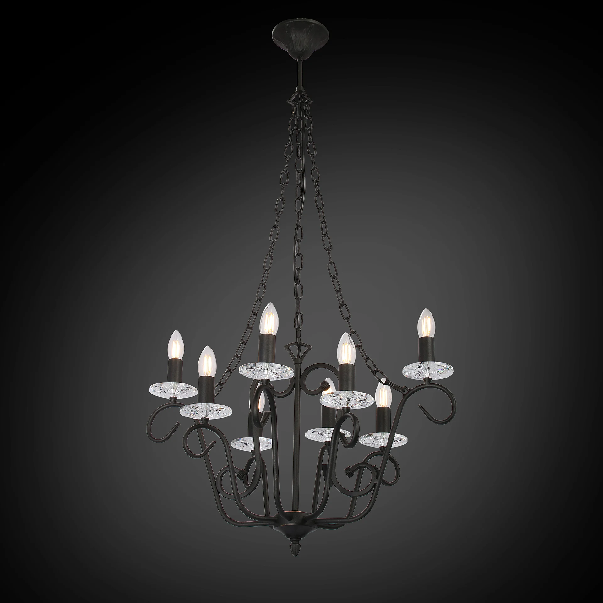 Подвесная люстра Розанофф Veronique RS110/8 от Розанофф, подходит для гостиной, в стиле кованые, кантри. Материал — металл, цвет черный, форма плафона — свечи. Модель имеет 8 ламп, цоколь E14, мощность 60 Вт. Направление света — вверх, крепление — крюк. Габариты: высота 1000 мм, ширина 550 мм. Коллекция Veronique.