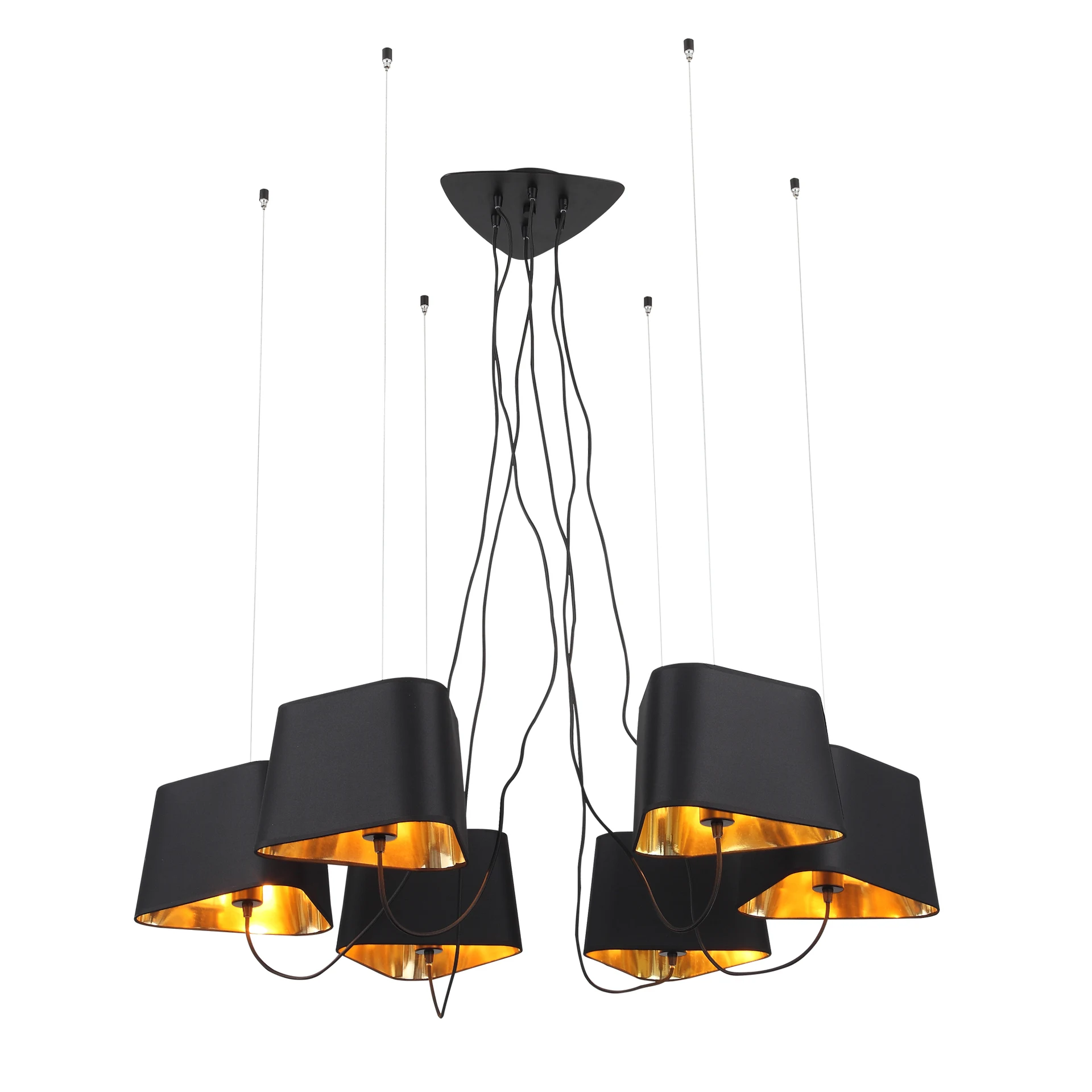 Подвесная люстра ST Luce Ambrela SL1110.403.06 от ST Luce, подходит для спальни, в стиле современный. Материал — металл, цвет черный, плафон из текстиль, форма плафона — треугольные. Модель имеет 6 ламп, цоколь E27, мощность 240 Вт. Крепление — планка. Габариты: высота 1700 мм, ширина 1000-1700, диаметр 1000-1700. Коллекция Ambrela.
