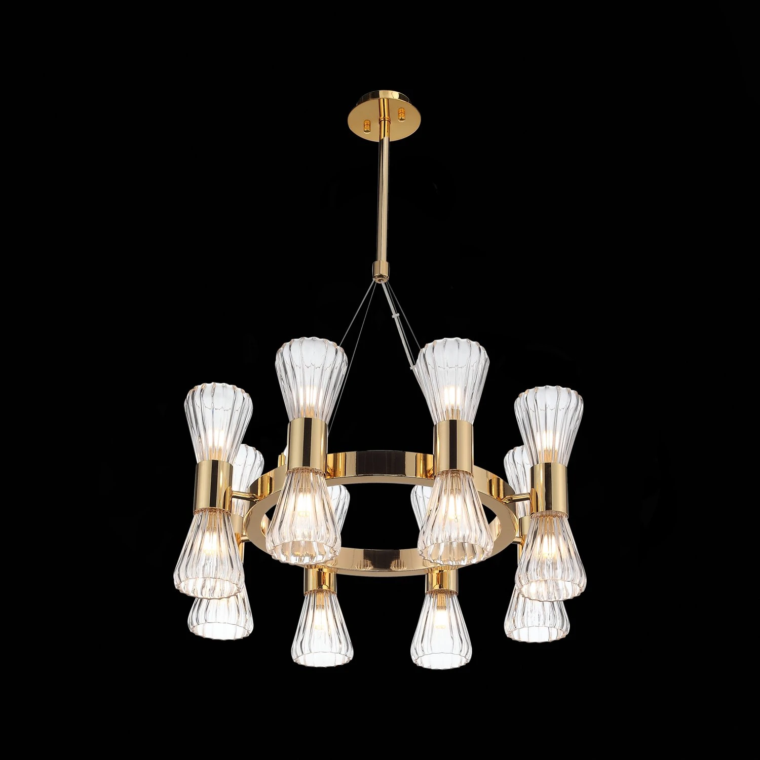 Подвесная люстра ST Luce Diori SLD002.203.16 от ST Luce, подходит для гостиной, в стиле современный. Материал — металл, цвет золото, плафон из стекла, цвет плафона прозрачный, форма плафона — круглый плафон. Модель имеет 16 ламп, цоколь G9, мощность 48 Вт. Крепление — планка. Габариты: высота 1520 мм, ширина 700 мм, диаметр 700 мм. Коллекция Diori, световой поток — 3024.