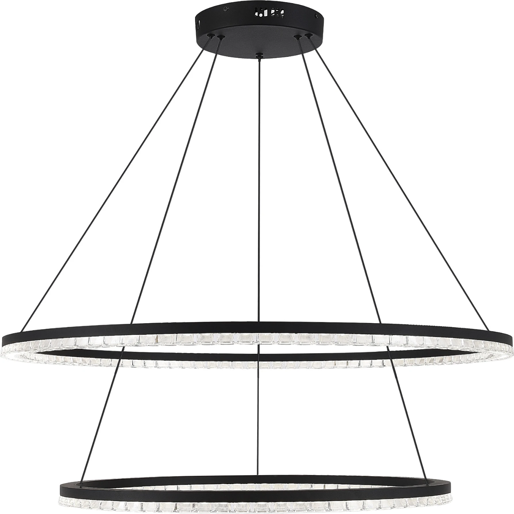Подвесная люстра ST Luce Euclidics SL1018.403.02 от ST Luce — люстры. Материал — алюминий, цвет черный, плафон из акрил, цвет плафона прозрачный, форма плафона — кольца. Модель имеет 2 лампы, цоколь LED, мощность 192 Вт, площадь освещения до 67 кв. м. Направление света — вниз, цветовая температура нейтральный (4000k), крепление — планка. Степень защиты IP20. Габариты: высота 1500 мм, ширина 850 мм, диаметр 850 мм. Коллекция Euclidics, световой поток — 8640.