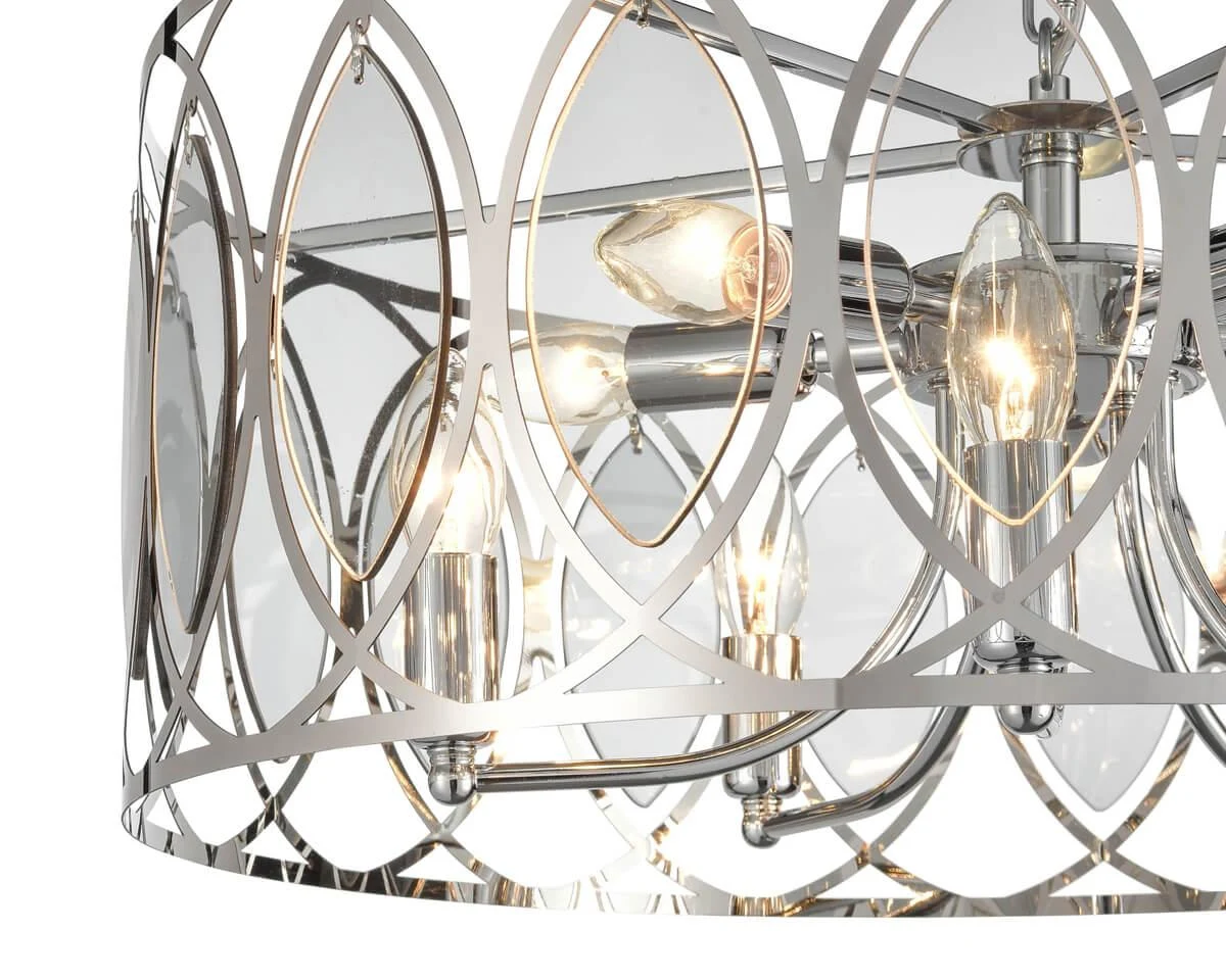 Подвесная люстра Vele Luce Angela VL3153P10 от Vele Luce, подходит для гостиной, для спальни. Материал — металл, цвет хром, цвет плафона дымчатый, форма плафона — круглые. Модель имеет 10 ламп, цоколь E14, мощность 400 Вт, площадь освещения до 20 кв. м. Направление света — равномерное. Степень защиты IP20. Габариты: высота 1100 мм, ширина 600 мм, диаметр 600 мм. Коллекция Angela.