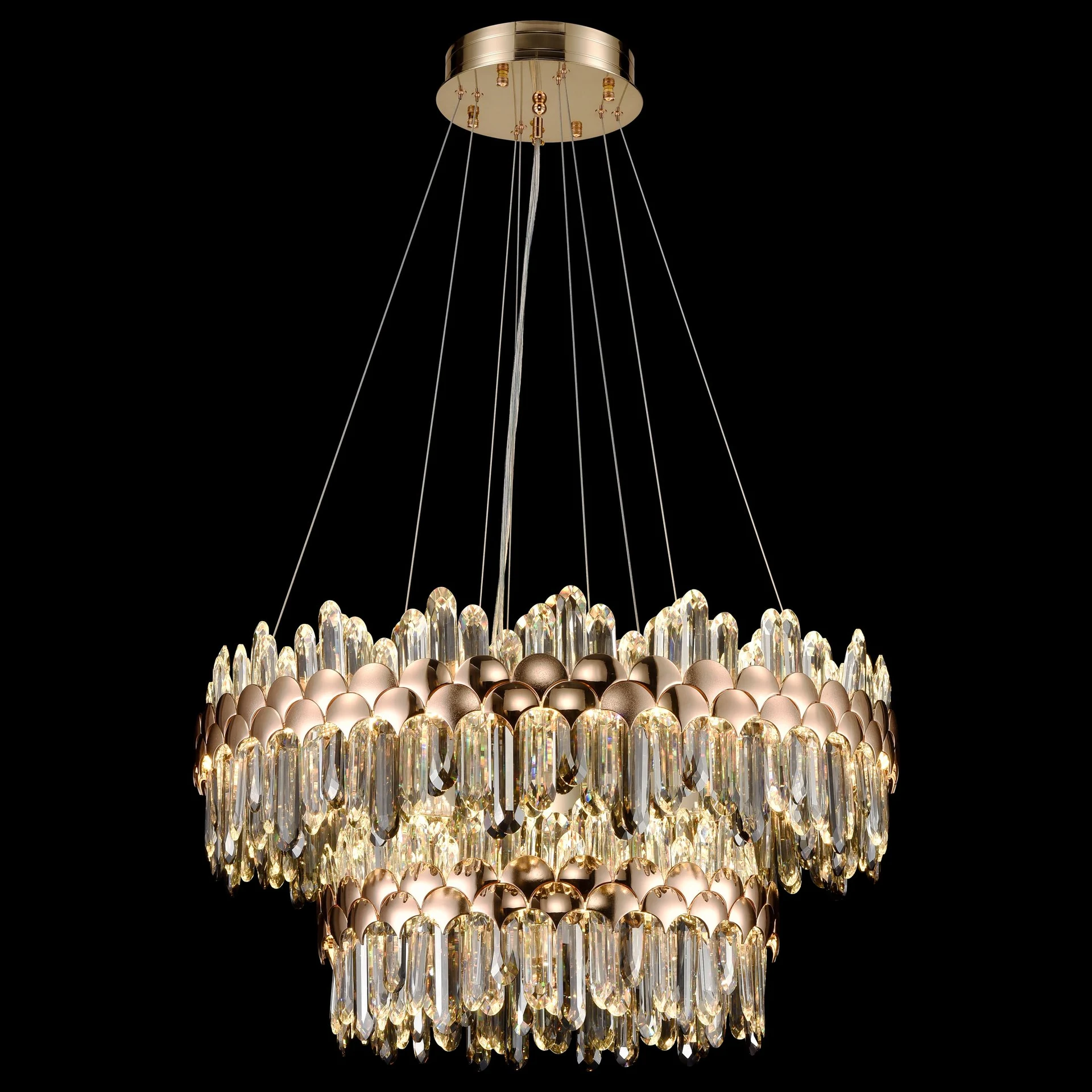 Подвесная люстра Wertmark Debora WE104.03.323 от Wertmark — люстры. Материал — металл, цвет золото, плафон из хрусталь, цвет плафона прозрачный. Модель имеет 1 лампу, цоколь LED, мощность 240 Вт. Регулировка цветовой температуры, цветовая температура 6500, крепление — планка. Степень защиты IP20. Габариты: высота 465 мм, ширина 800 мм, диаметр 800 мм. Коллекция Debora.