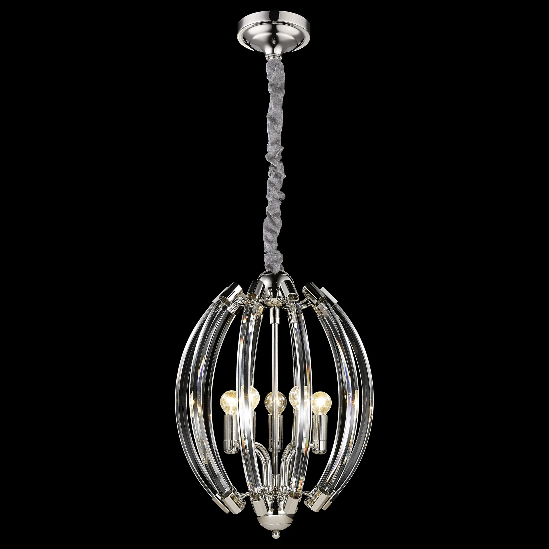 Подвесная люстра Wertmark Prando WE149.05.203 от Wertmark, подходит для гостиной, в стиле современный. Материал — металл, цвет никель, плафон из хрусталь, цвет плафона прозрачный. Модель имеет 5 ламп, цоколь E14, мощность 40 Вт. Крепление — планка. Степень защиты IP20. Габариты: высота 520 мм, ширина 380 мм, диаметр 380 мм. Коллекция Prando.