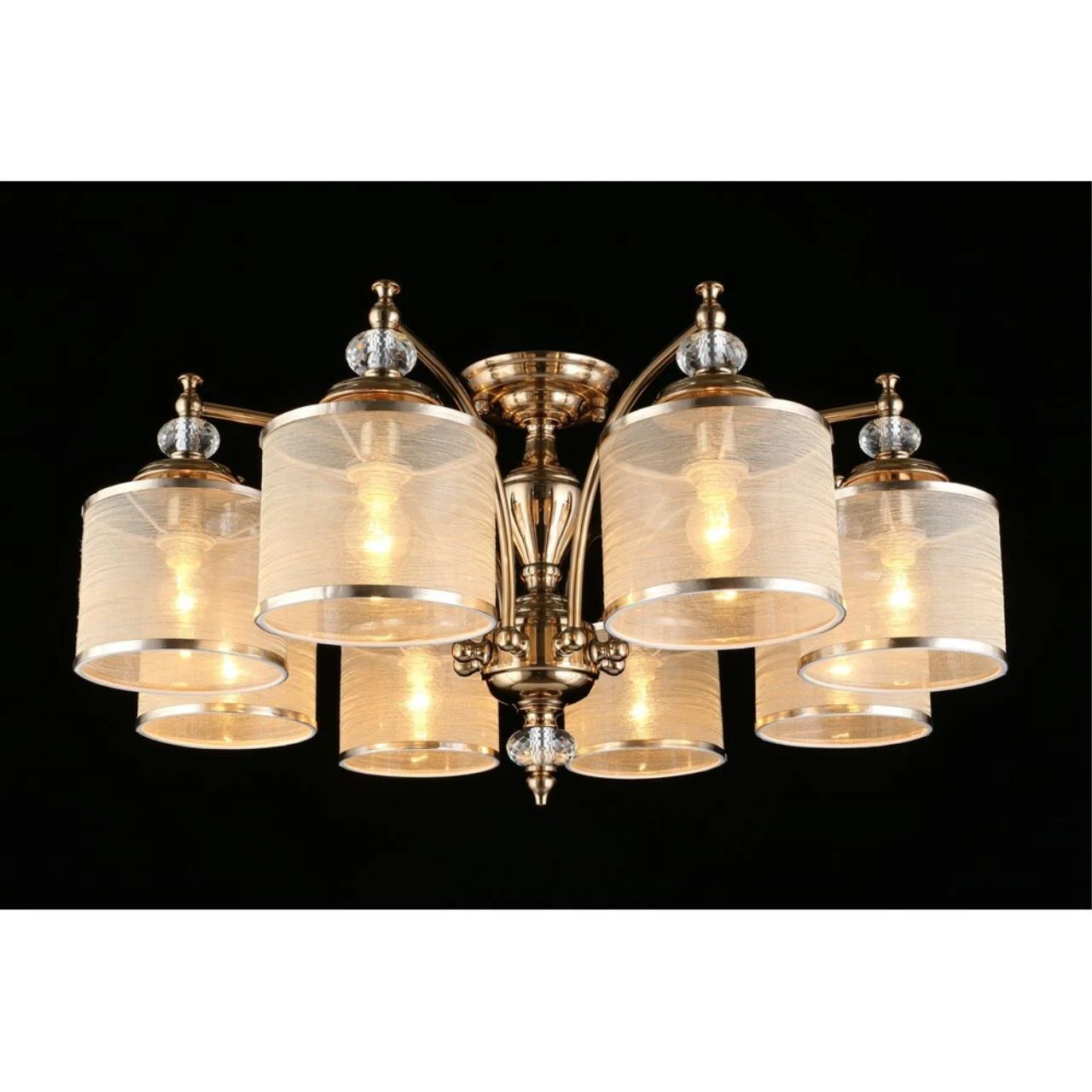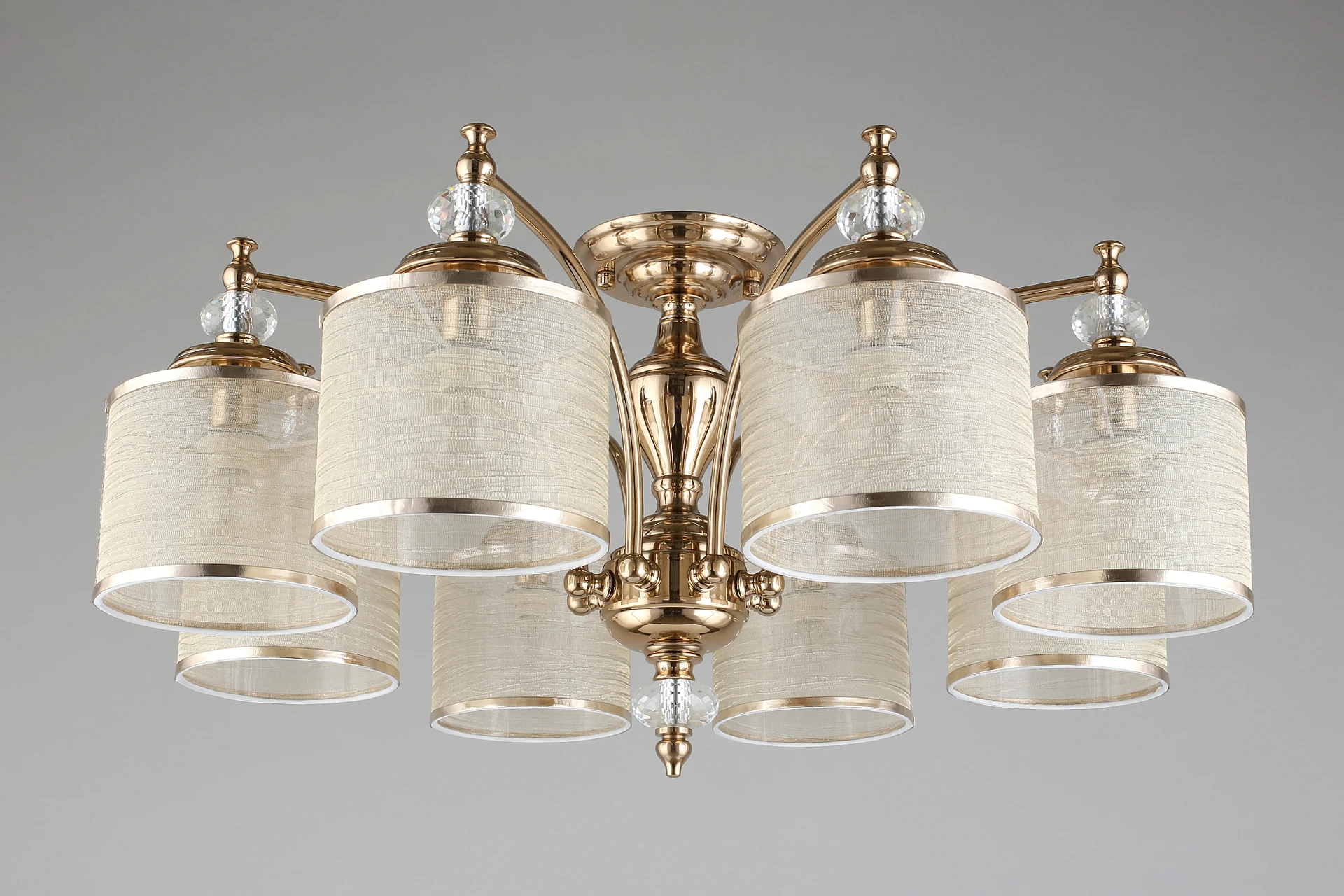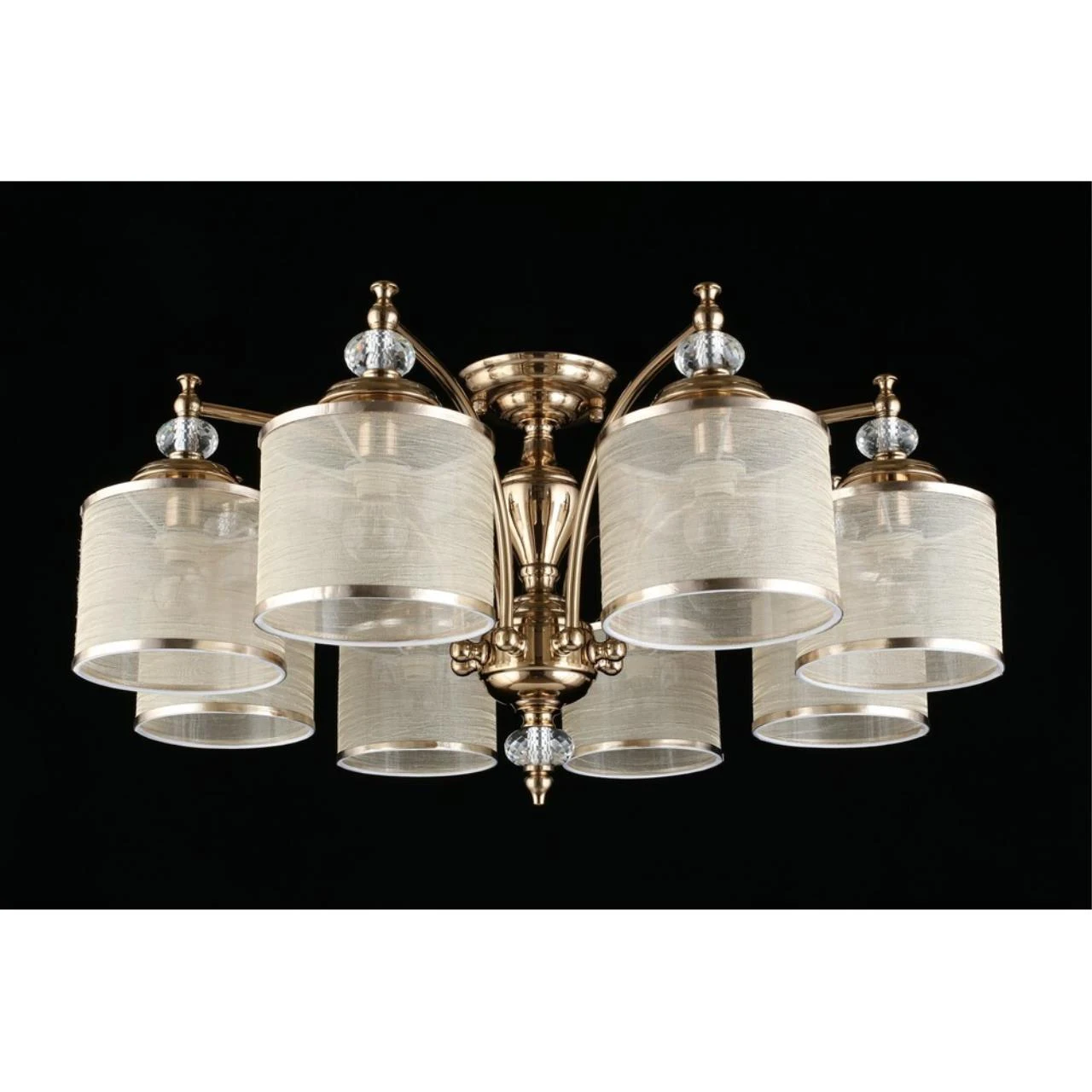 Потолочная люстра Aployt Agata APL.720.07.08 от Aployt, подходит для гостиной, для спальни, в стиле классика, арт-деко. Материал — металл, цвет песочное золото, плафон из ткань + пластик, цвет плафона карамельный, форма плафона — цилиндр. Модель имеет 8 ламп, цоколь E14, мощность 320 Вт. Крепление — планка. Степень защиты IP20. Габариты: высота 380 мм, ширина 780 мм, диаметр 780 мм. Коллекция Agata.