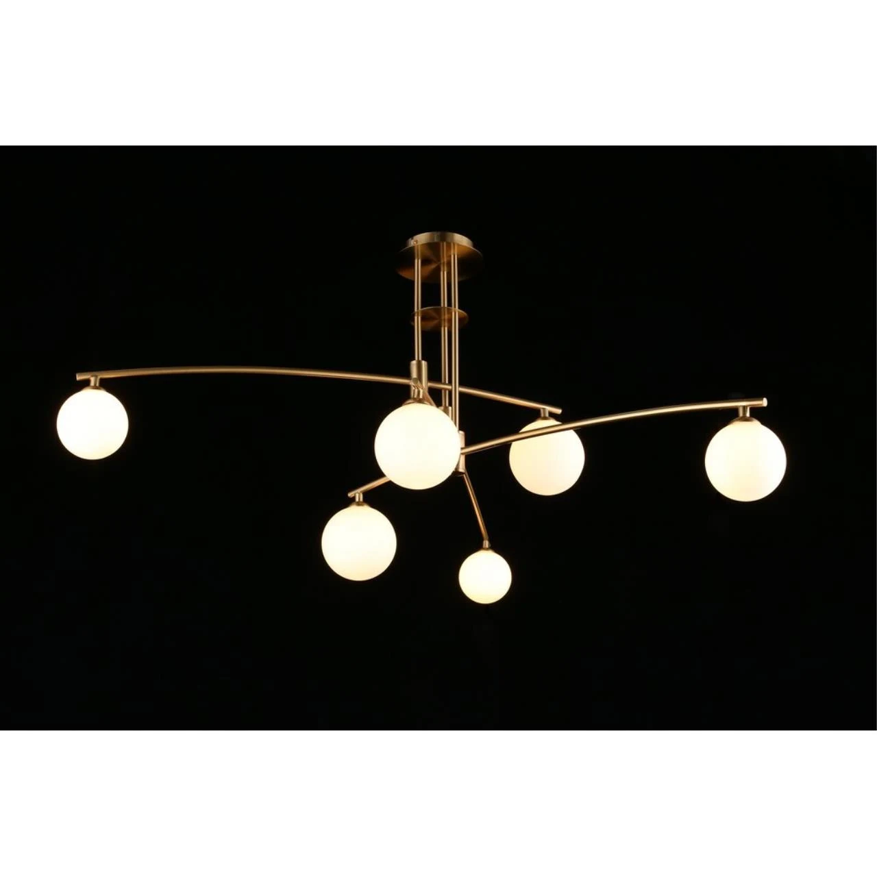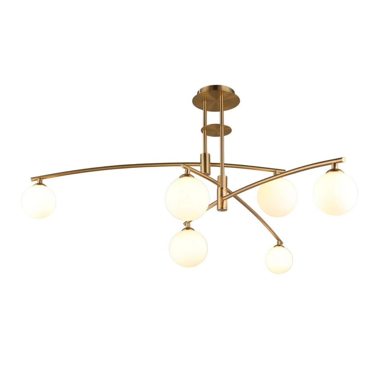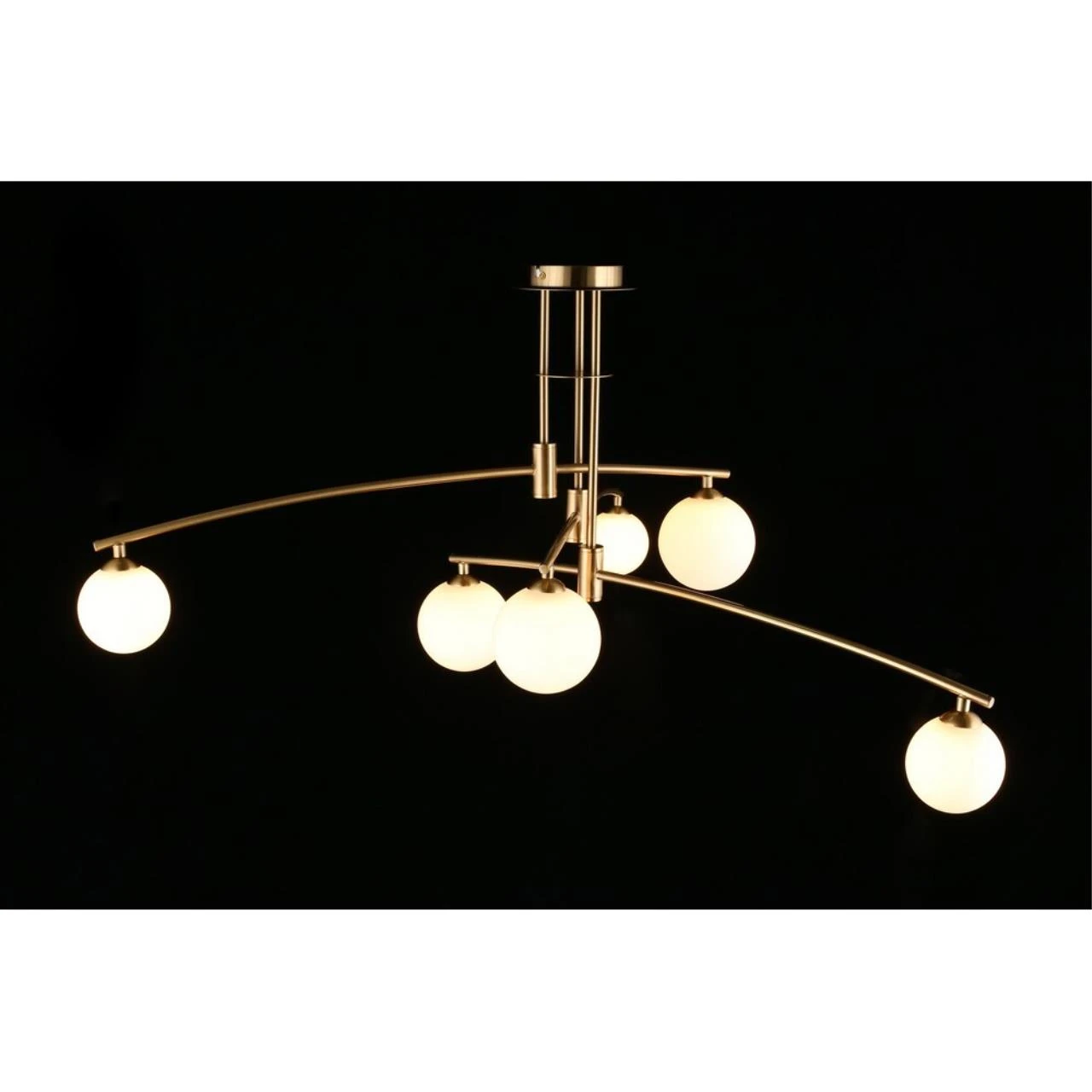 Потолочная люстра Aployt Ewelina APL.621.07.06 от Aployt — люстры. Материал — металл, цвет бронза, плафон из стекла, цвет плафона белый, форма плафона — шар. Модель имеет 6 ламп, цоколь G9, мощность 30 Вт. Крепление — планка. Габариты: высота 520 мм, ширина 1160 мм, диаметр 1160 мм. Коллекция Ewelina, примечание — Эксплуатация только со светодиодными (LED) лампами, световой поток — 1650.