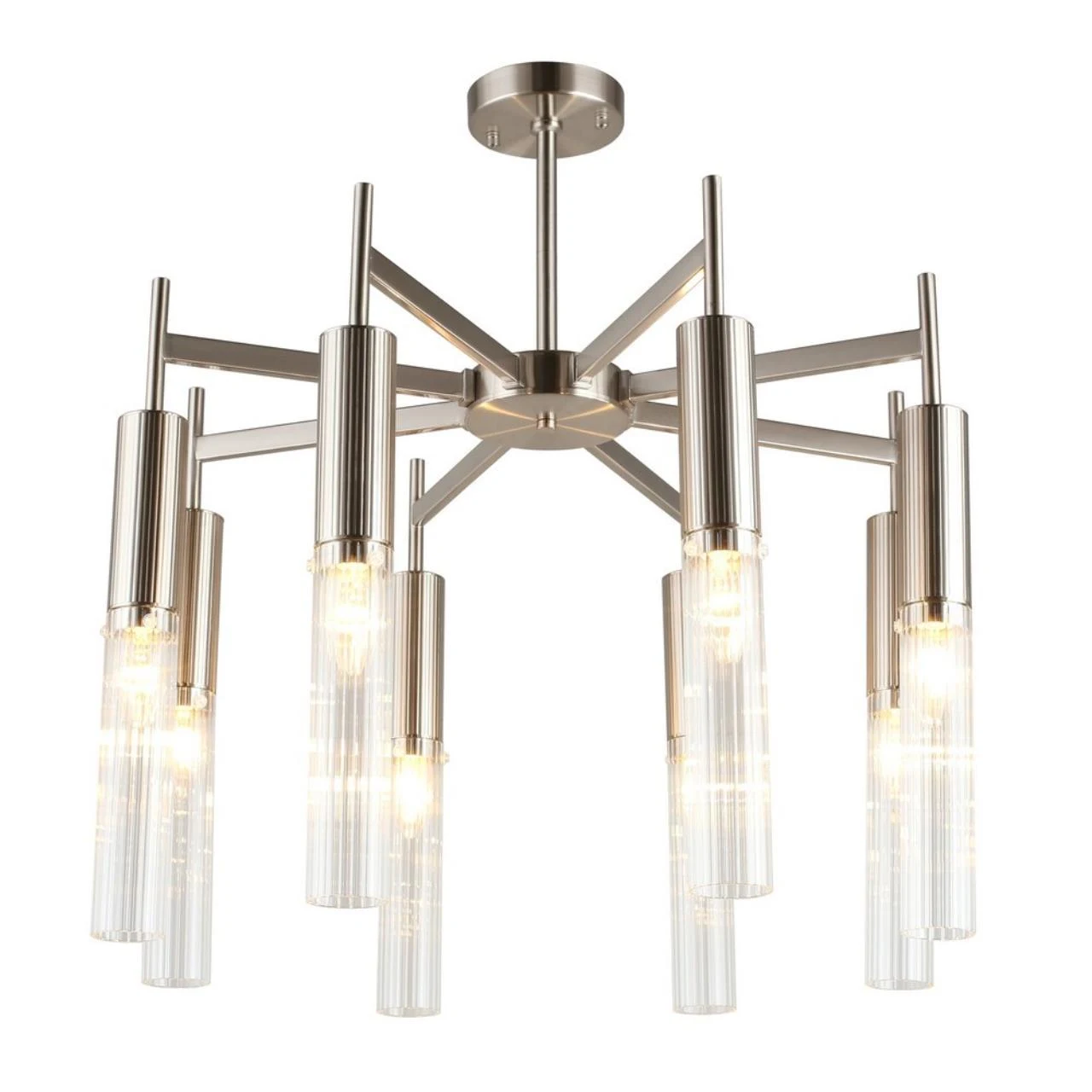 Потолочная люстра Aployt Kasia APL.327.27.08 от Aployt — люстры. Материал — металл, цвет никель, плафон из стекла, цвет плафона прозрачный, форма плафона — трубки. Модель имеет 8 ламп, цоколь E14, мощность 320 Вт. Направление света — вниз. Габариты: высота 560 мм, ширина 630 мм, диаметр 630 мм. Коллекция Kasia, световой поток — 3360.