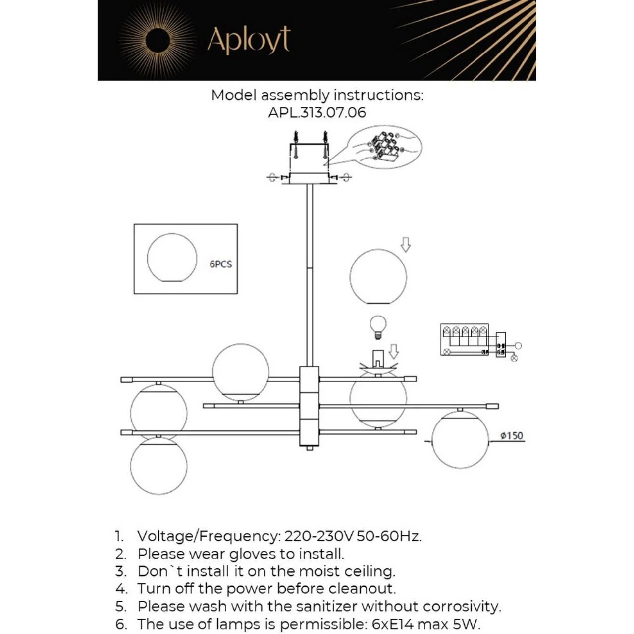 Потолочная люстра Aployt Kristina APL.313.07.06 от Aployt — люстры. Материал — металл, цвет черный, плафон из стекла, цвет плафона белый, форма плафона — шар. Модель имеет 6 ламп, цоколь E14, мощность 30 Вт. Крепление — планка. Габариты: высота 680 мм, ширина 1000 мм, диаметр 1000 мм. Коллекция Kristina, световой поток — 1650.