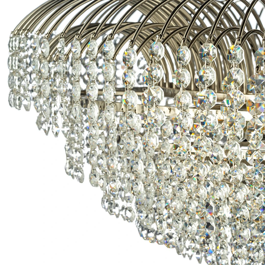 Потолочная хрустальная люстра Arti Lampadari Elba Elba E 1.2.60.100 N от Arti Lampadari, подходит для гостиной, для спальни, в стиле арт-деко, хрусталь. Материал — металл, цвет никель, плафон из хрусталь, цвет плафона прозрачный, форма плафона — круглые. Модель имеет 10 ламп, цоколь E14, мощность 400 Вт. Направление света — вниз. Степень защиты IP20. Габариты: высота 330 мм, ширина 600 мм, диаметр 600 мм. Коллекция Elba.