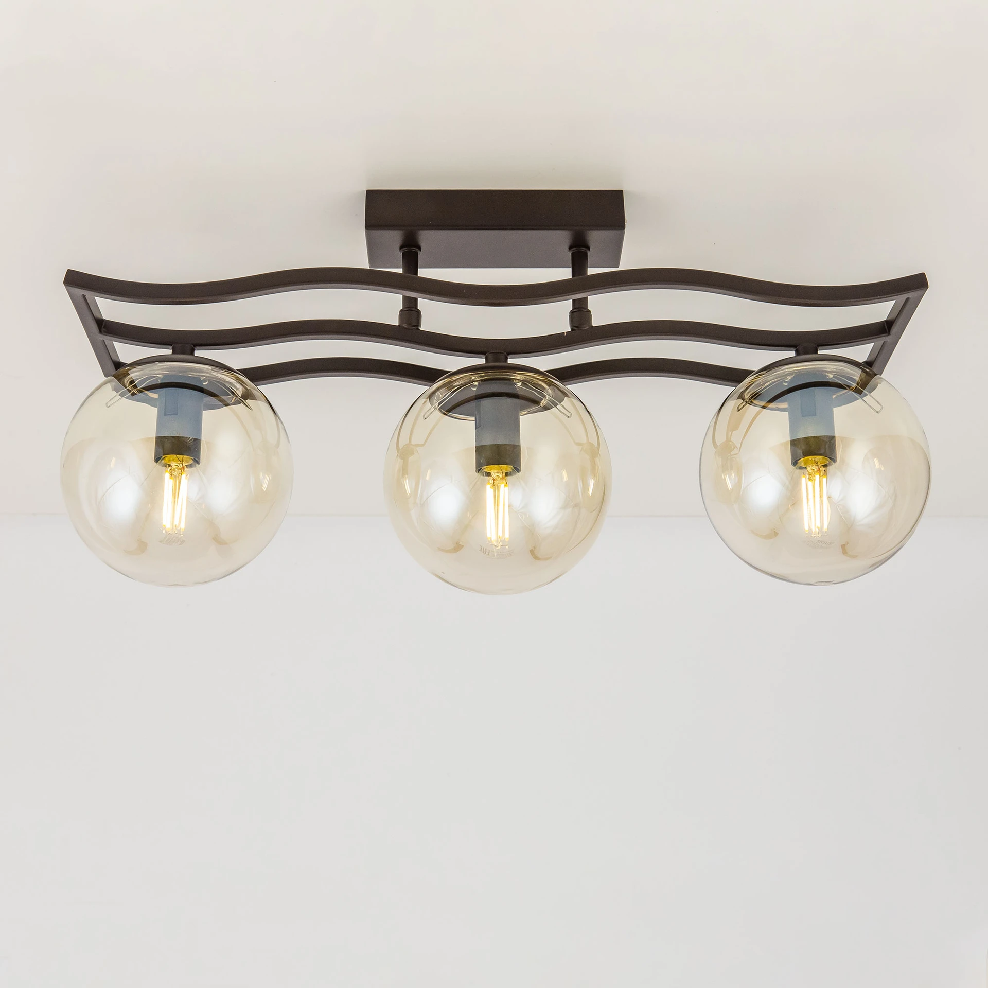 Потолочная люстра Citilux Бриз CL106235 от Citilux, подходит для гостиной. Материал — металл, цвет венге, плафон из стекла, цвет плафона шампань, форма плафона — шар. Модель имеет 3 лампы, цоколь E14, мощность 180 Вт, площадь освещения до 11 кв. м. Направление света — вниз. Степень защиты IP20. Габариты: высота 230 мм, ширина 150 мм. Коллекция Бриз, световой поток — 2700.