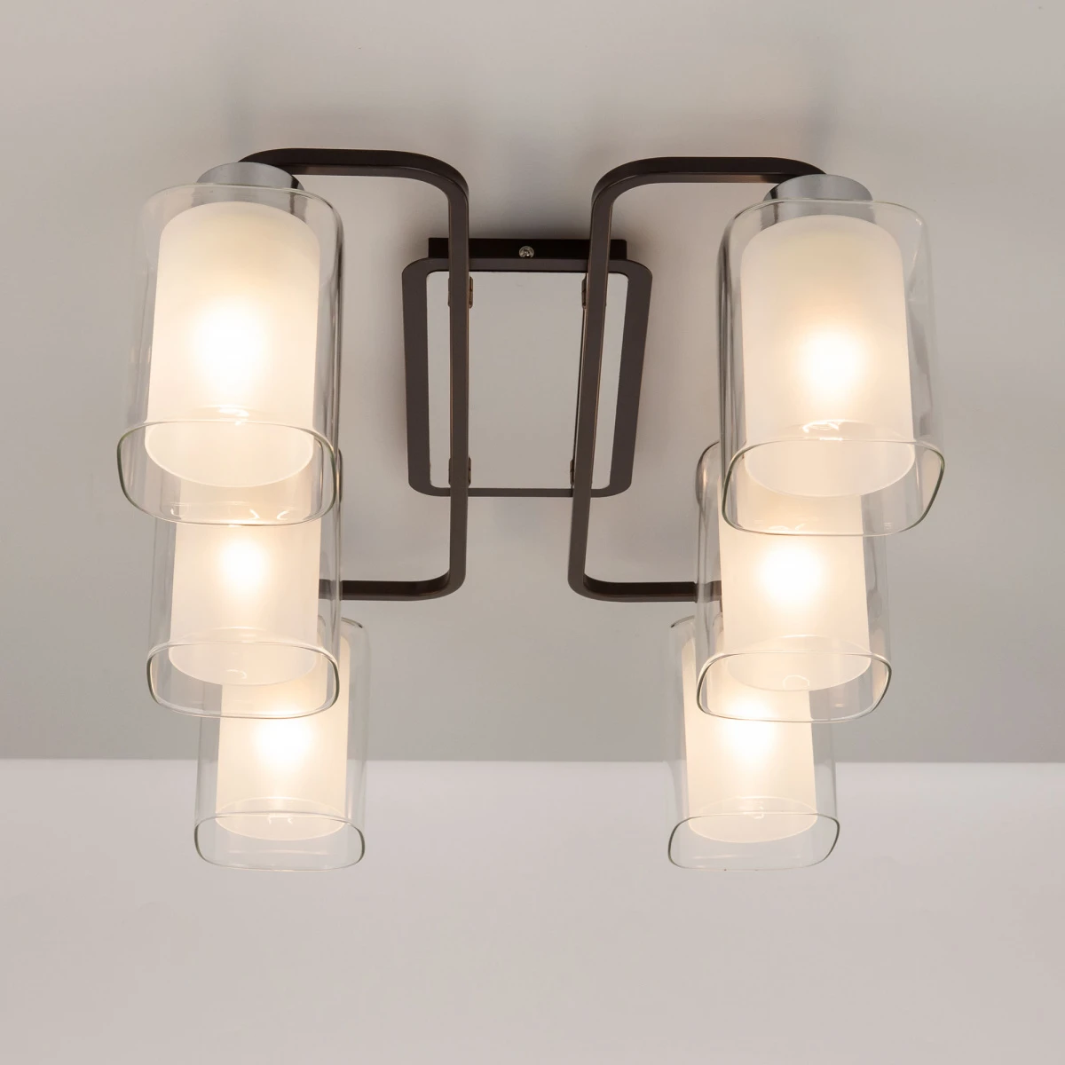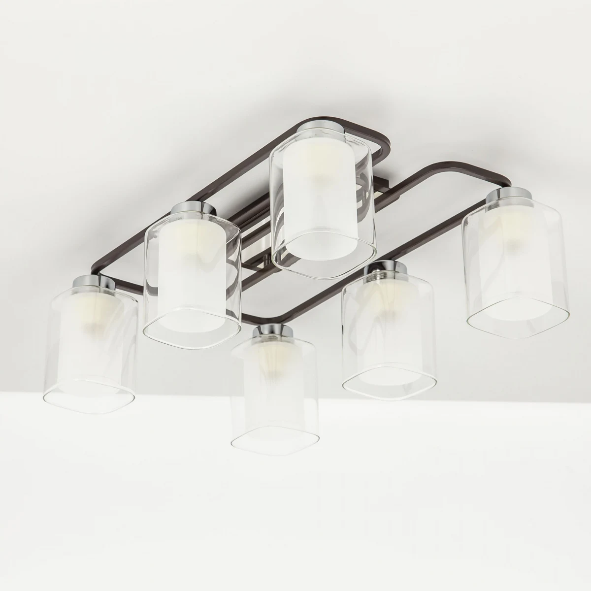 Потолочная люстра Citilux Румба CL159261 от Citilux, подходит для прихожей, в стиле современный. Материал — металл, цвет венге (коричневый), плафон из стекла, цвет плафона прозрачный, форма плафона — квадратные. Модель имеет 6 ламп, цоколь E27, мощность 450 Вт. Степень защиты IP20. Габариты: высота 205 мм, ширина 390 мм. Коллекция Румба.