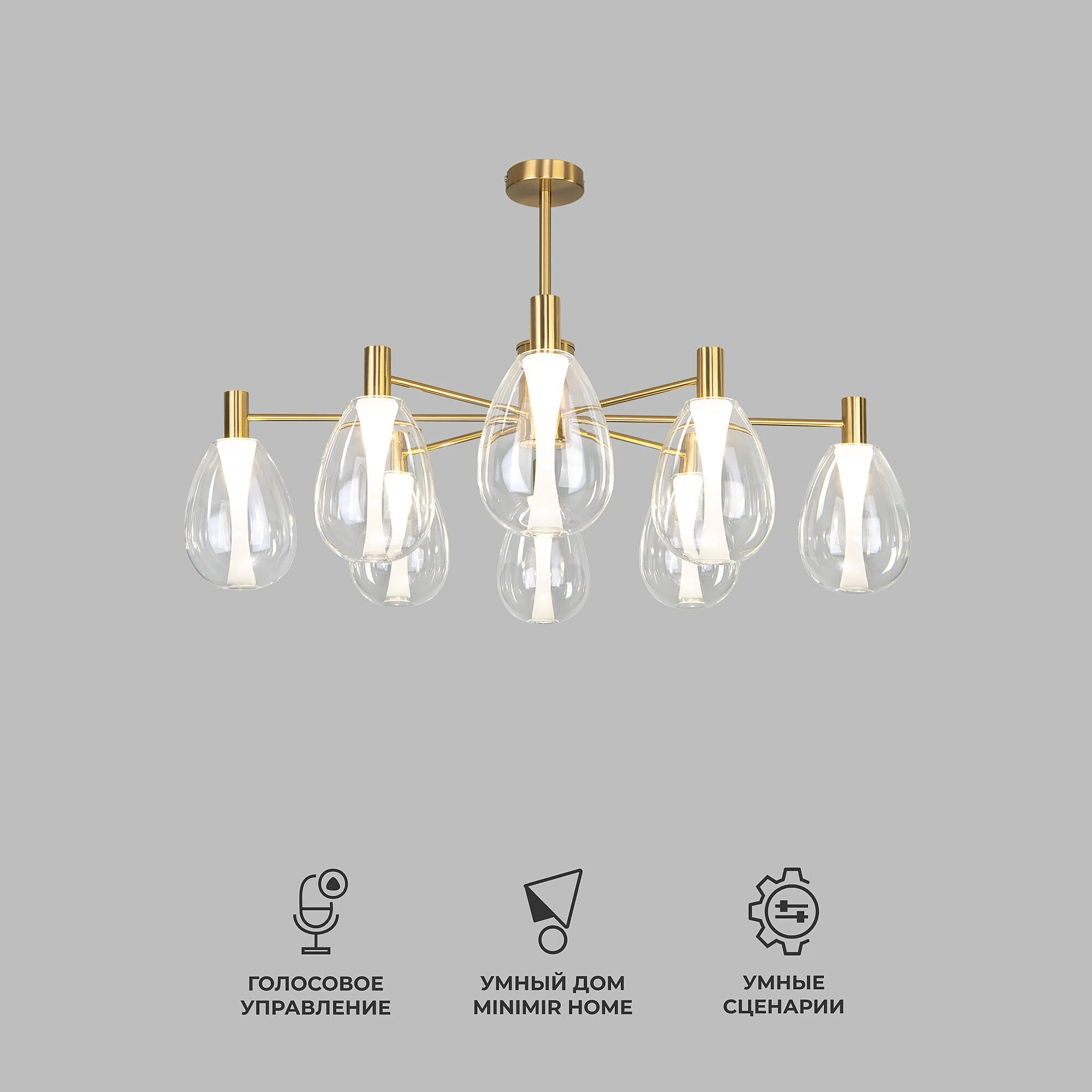 Потолочная люстра Eurosvet Magma 60175/8 латунь Smart от Eurosvet, подходит для кухни, для гостиной, для прихожей, в стиле современный. Материал — металл, цвет латунь, плафон из стекло, цвет плафона прозрачный. Модель имеет 8 ламп. Габариты: высота 525 мм, ширина 860 мм, диаметр 100 мм. Класс защиты от поражения электрическим током — I, диапазон рабочих температур — -10 ... +40.