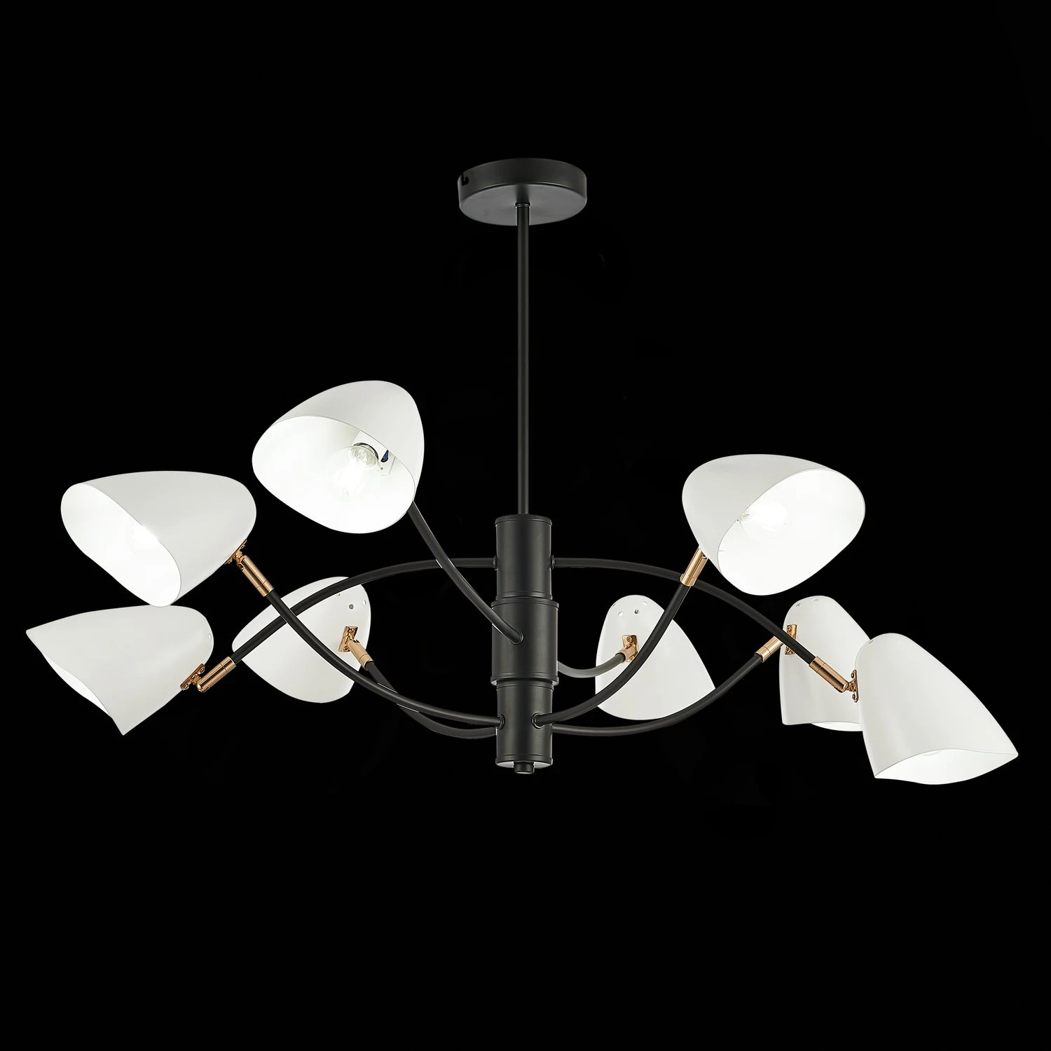 Потолочная люстра Evoluce Satta SLE103602-08 от Evoluce, подходит для гостиной, для кабинета, в стиле современный. Материал — металл, цвет черный, цвет плафона белый, форма плафона — круглый плафон. Модель имеет 8 ламп, цоколь E14, мощность 320 Вт, площадь освещения до 16 кв. м. Направление света — вниз, крепление — планка. Степень защиты IP20. Габариты: высота 550 мм, ширина 890 мм. Коллекция Satta.