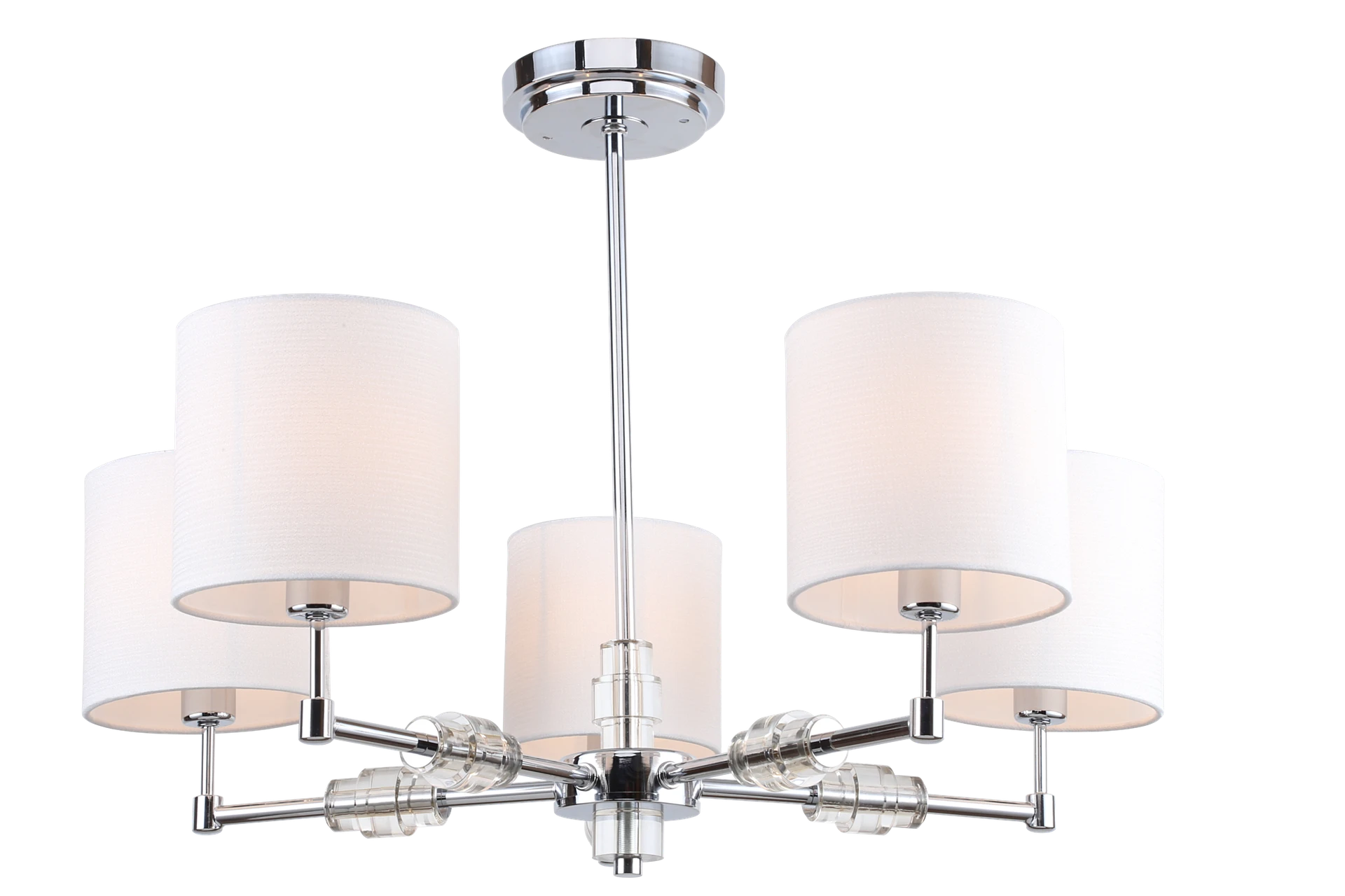 Потолочная люстра Freya Adela FR5070PL-05CH от Freya — люстры. Материал — металл, цвет хром, плафон из текстиль, цвет плафона белый, форма плафона — абажуры. Модель имеет 5 ламп, цоколь E14, мощность 40 Вт. Крепление — планка. Степень защиты IP20. Габариты: высота 470 мм, ширина 650 мм, диаметр 650 мм. Коллекция Adela, класс защиты от поражения электрическим током — Class1.