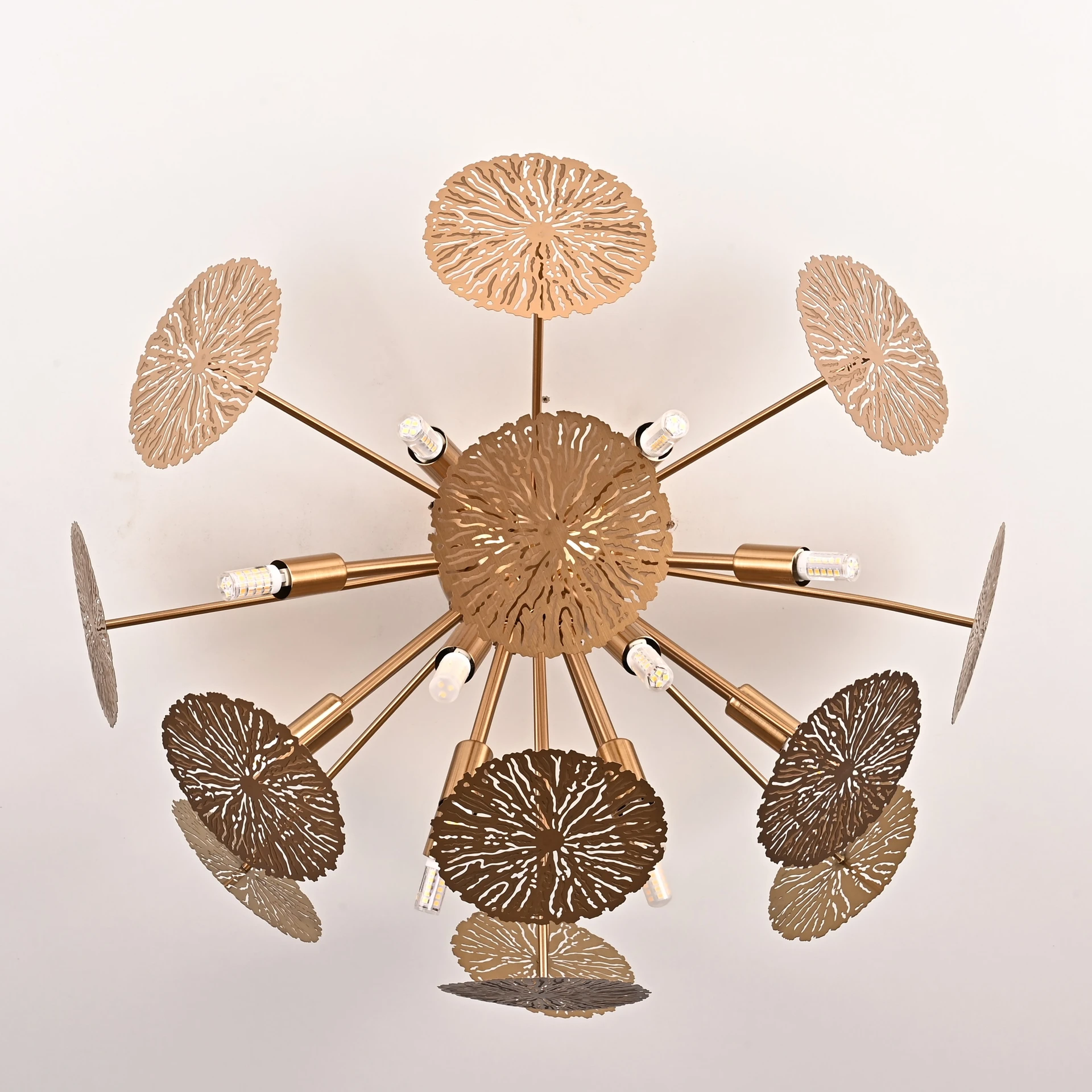 Потолочная люстра ImperiumLoft Inca-C01 203835-26 от ImperiumLoft, подходит для гостиной, в стиле современный, арт-деко. Материал — металл, цвет латунь, плафон из стекла, цвет плафона латунь. Модель имеет 12 ламп, цоколь G9, мощность 480 Вт, площадь освещения до 24 кв. м. Степень защиты IP20. Габариты: высота 275 мм, ширина 480 мм, диаметр 480 мм. Коллекция Inca-C01.