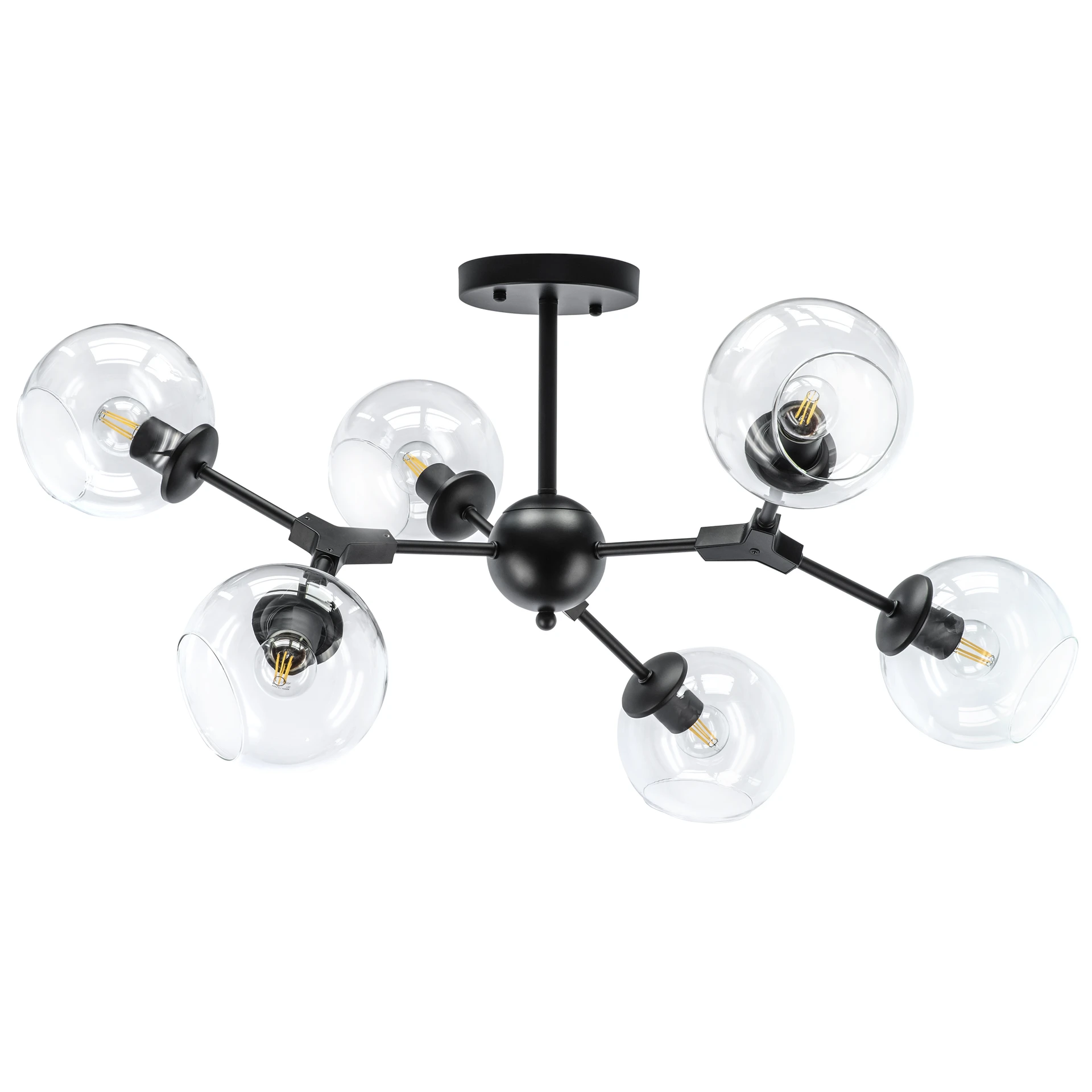 Потолочная люстра Lightstar Beta 785067 от Lightstar, подходит для гостиной, в стиле хай-тек. Материал — металл, цвет черный, плафон из стекла, цвет плафона прозрачный, форма плафона — шар. Модель имеет 6 ламп, цоколь E27, мощность 240 Вт. Крепление — планка. Степень защиты IP20. Габариты: высота 380 мм, ширина 940 мм, диаметр 940 мм. Коллекция Beta.