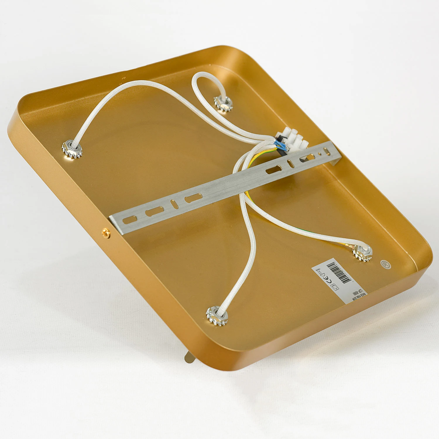 Потолочная люстра Lussole Moore LSP-8990 от Lussole — люстры. Материал — металл, цвет золото, плафон из стекла, цвет плафона белый, форма плафона — квадратные. Модель имеет 4 лампы, цоколь G9, мощность 140 Вт. Направление света — вниз. Степень защиты IP20. Габариты: высота 120 мм, ширина 360 мм. Коллекция Moore, световой поток — 1400.