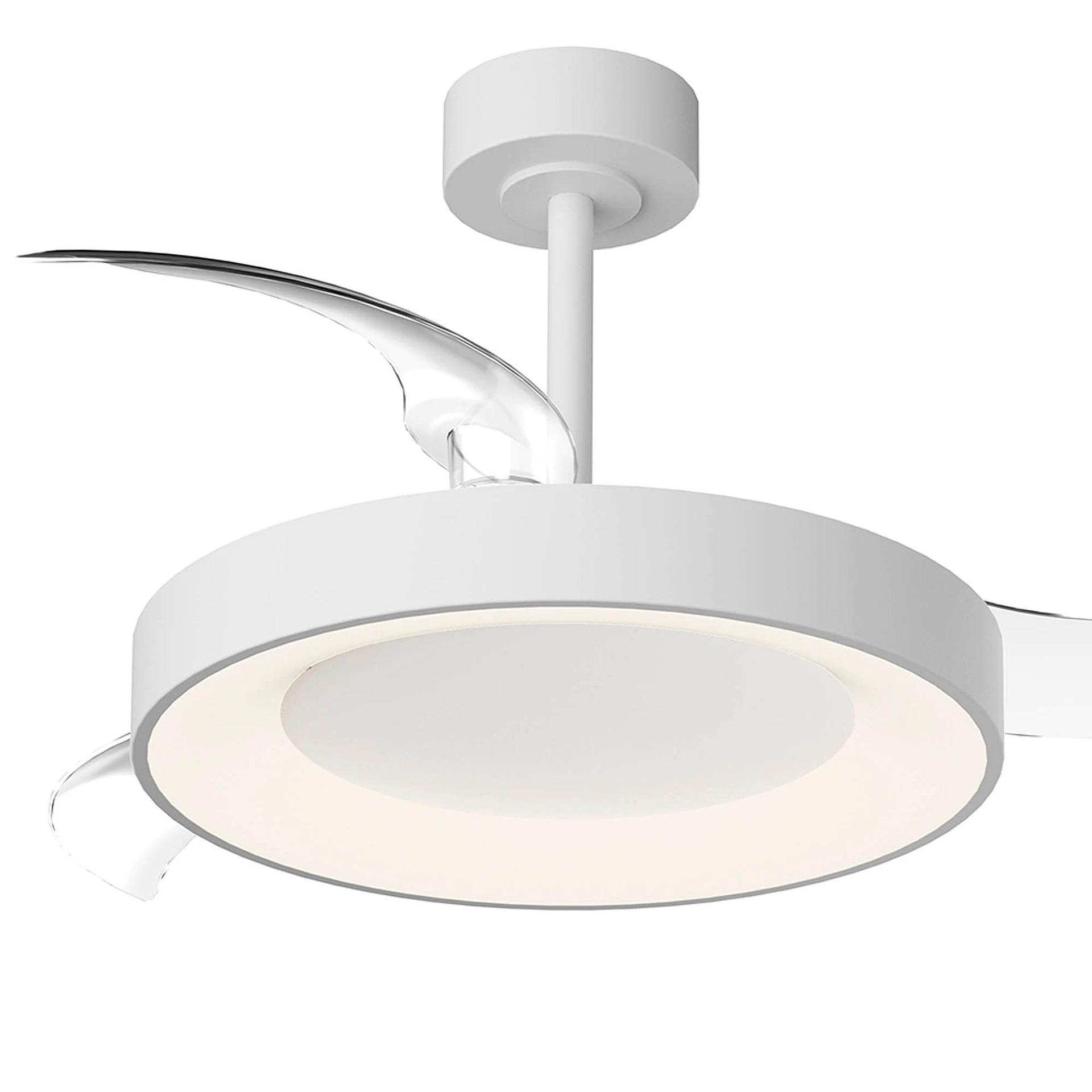 Люстра-вентилятор Mantra Niseko Fan 9010 от Mantra, для установки на потолок. Материал — пластик, цвет белый. Модель имеет 1 лампу, цоколь LED, мощность 50 (30). Поддержка диммера, цветовая температура Регулируемая. Степень защиты IP20. Габариты: высота 420 мм, ширина 490-1060, диаметр 490-1060. Коллекция Niseko Fan, световой поток — 3500-5500.