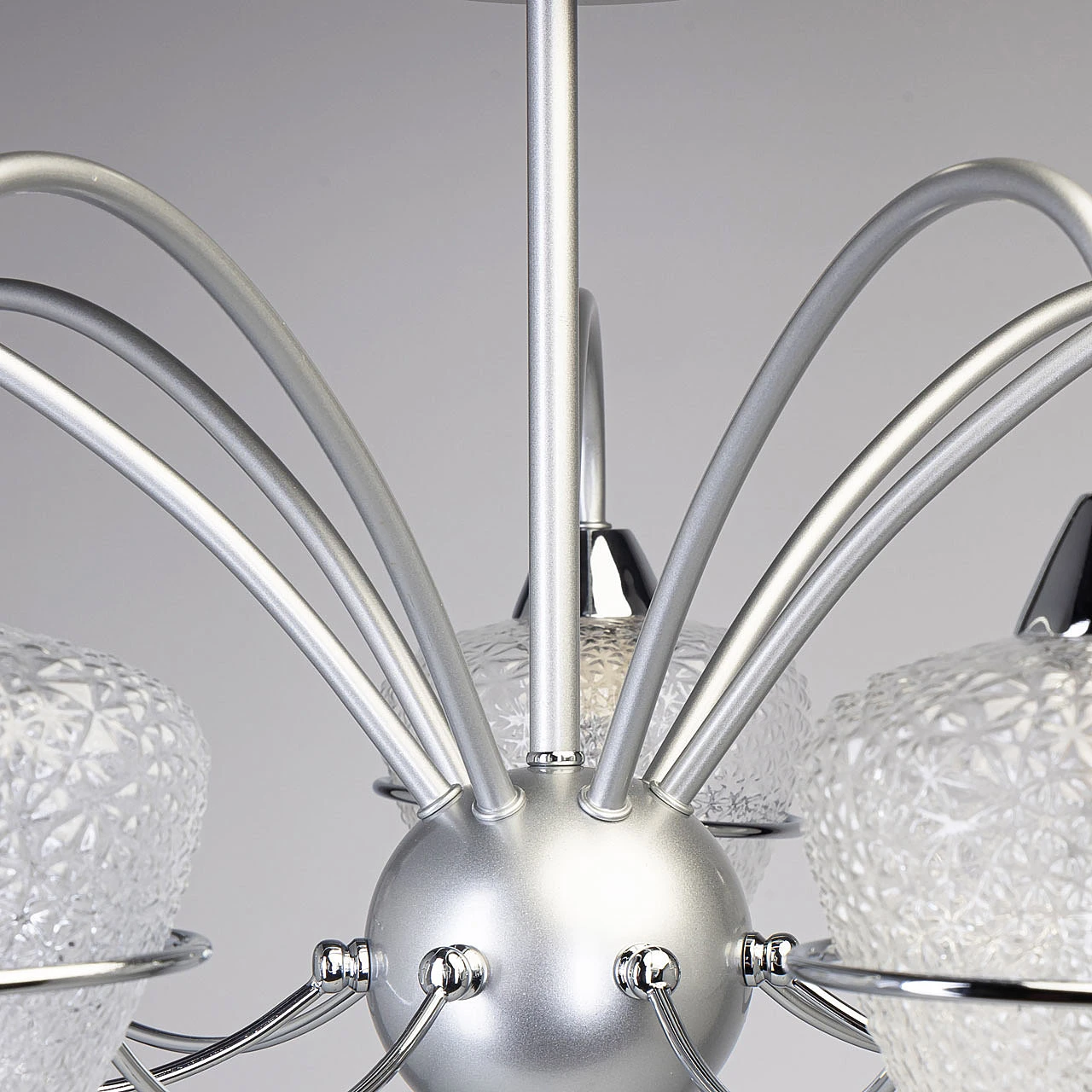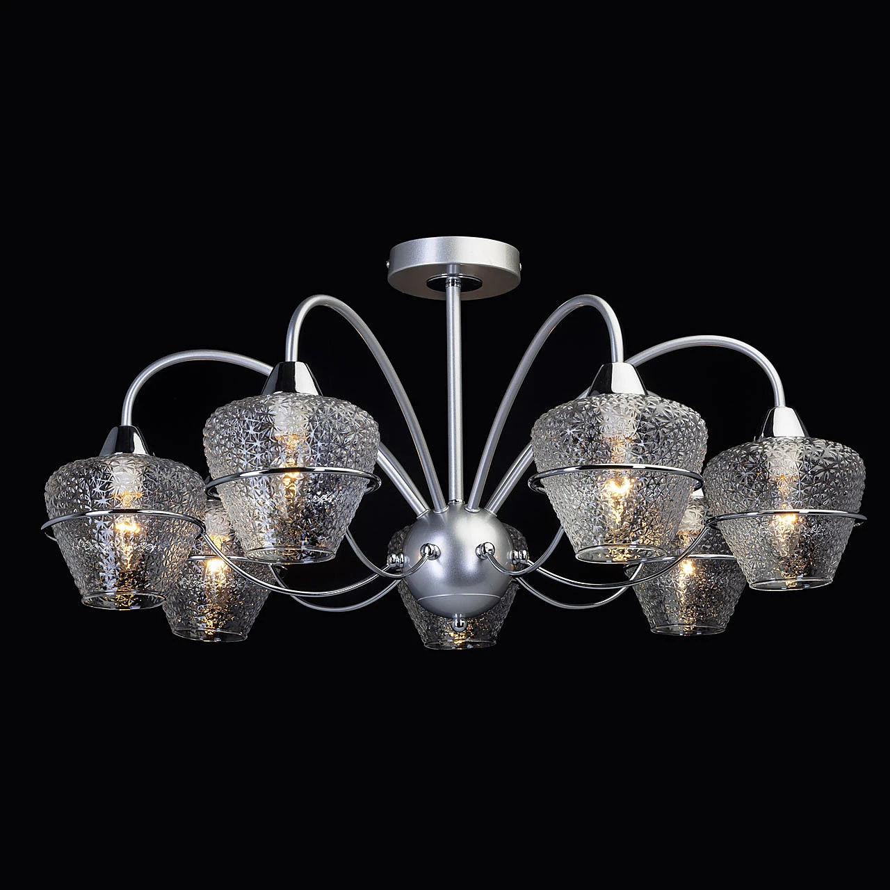 Потолочная люстра MW Light Блеск 315015407 от MW-Light, подходит для гостиной, в стиле классика. Материал — металл, цвет серебристый, плафон из стекла, цвет плафона прозрачный, форма плафона — круглый плафон. Модель имеет 7 ламп, цоколь E14, мощность 280 Вт. Крепление — планка. Габариты: высота 340 мм, ширина 720 мм, диаметр 720 мм. Коллекция Блеск, примечание — 1 режим - Лампы накаливания.