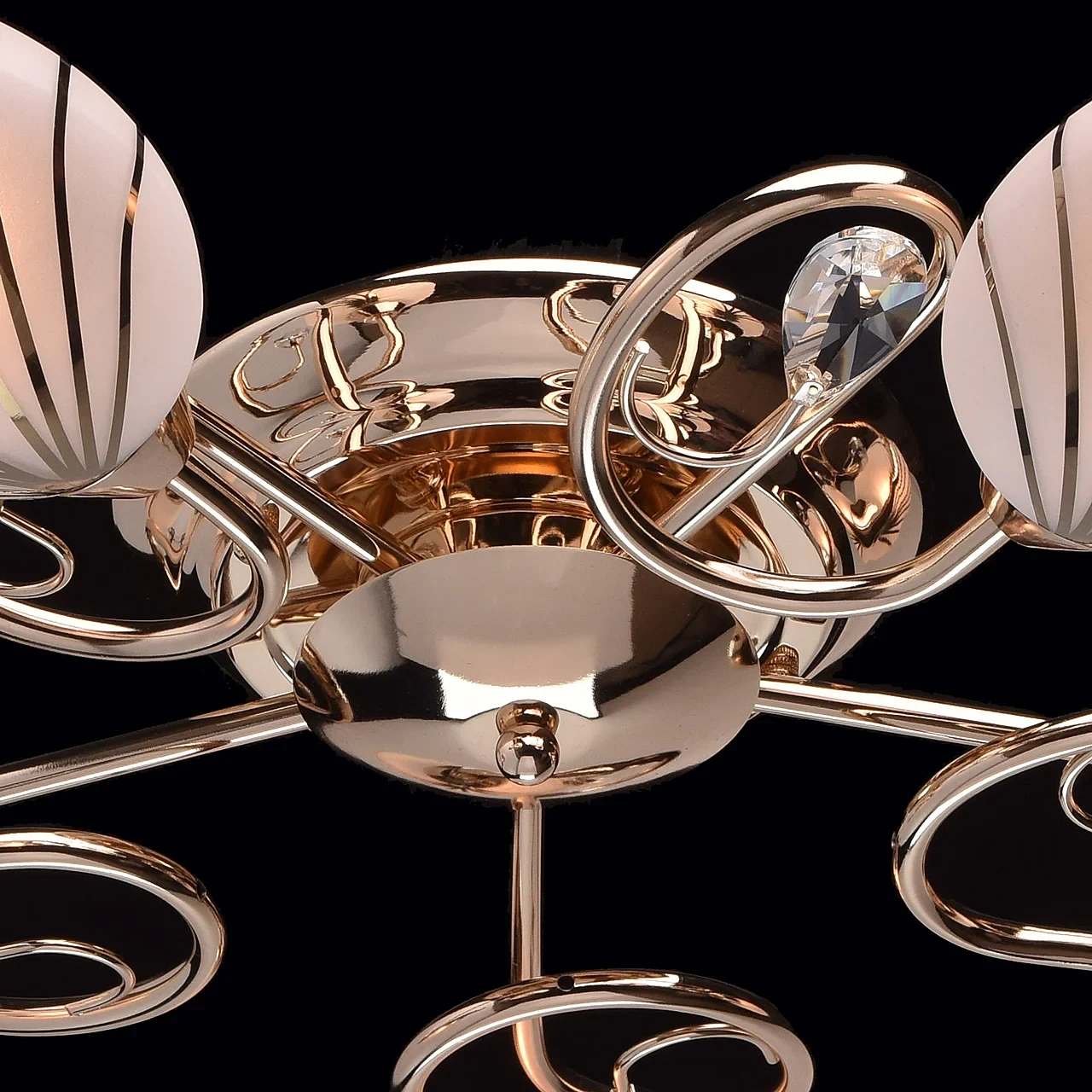 Потолочная люстра MW Light Фиеста 267012005 от MW-Light, подходит для гостиной, в стиле современный. Материал — металл, цвет золото, плафон из стекла, цвет плафона белый, форма плафона — с узором. Модель имеет 5 ламп, цоколь E14, мощность 300 Вт. Степень защиты IP20. Габариты: высота 130 мм, ширина 650 мм, диаметр 650 мм. Декор — хрустальные подвески, коллекция Фиеста.
