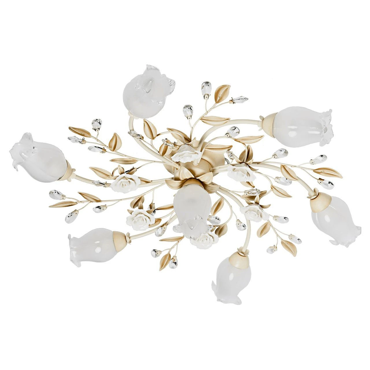 Потолочная люстра MW Light Роса 422010907 от MW-Light, подходит для гостиной, в стиле флористика. Материал — металл, цвет белый, плафон из стекла, форма плафона — лилия. Модель имеет 7 ламп, цоколь E14, мощность 280 Вт. Поддержка диммера. Степень защиты IP20. Габариты: высота 180 мм, ширина 780 мм, диаметр 780 мм. Декор — хрустальные подвески, коллекция Роса.