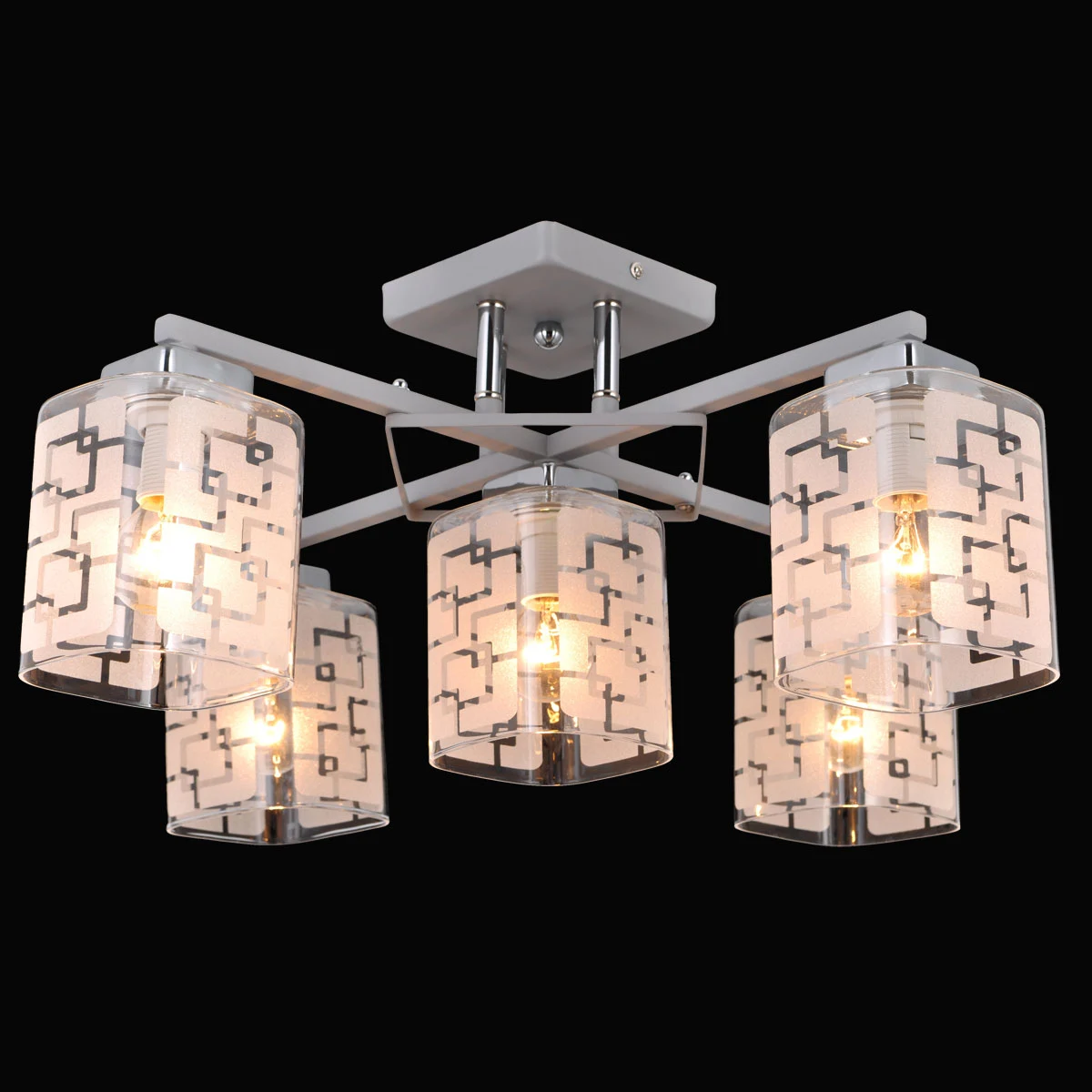 Потолочная люстра Natali Kovaltseva Pure PURE 75070/5C WHITE от Natali Kovaltseva, подходит для спальни, в стиле современный. Материал — металл, цвет белый, плафон из стекла, форма плафона — квадратные. Модель имеет 5 ламп, цоколь E14, мощность 40 Вт. Направление света — вниз. Габариты: высота 270 мм, ширина 610 мм, диаметр 610 мм. Коллекция Pure.
