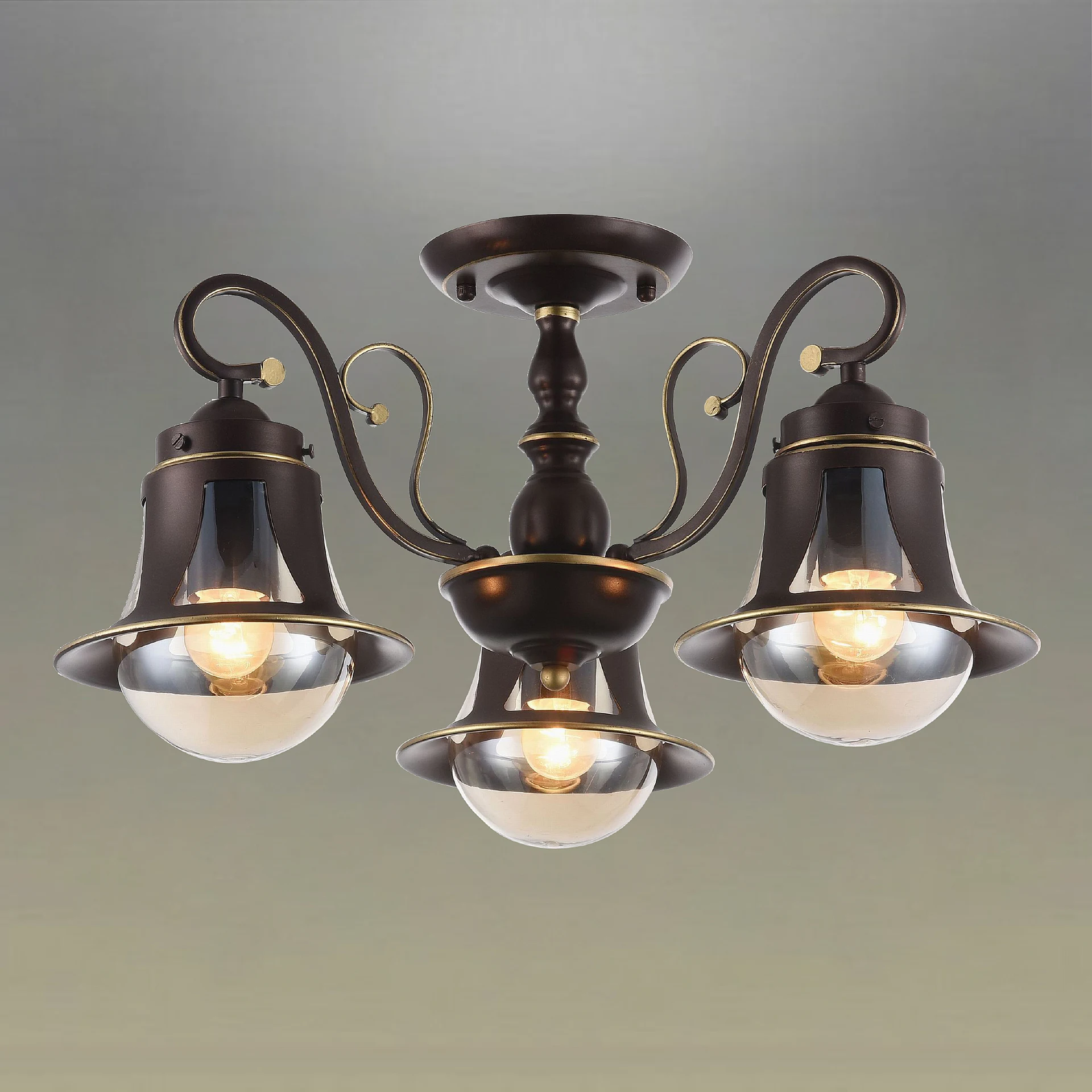 Потолочная люстра Omnilux Molfetta OML-50607-03 от Omnilux, подходит для гостиной, в стиле морской. Материал — металл, цвет коричневый, цвет плафона прозрачный, форма плафона — старинный фонарь. Модель имеет 3 лампы, цоколь E27, мощность 120 Вт. Крепление — планка. Габариты: высота 300 мм, ширина 580 мм, диаметр 580 мм. Коллекция Molfetta, световой поток — 1260.