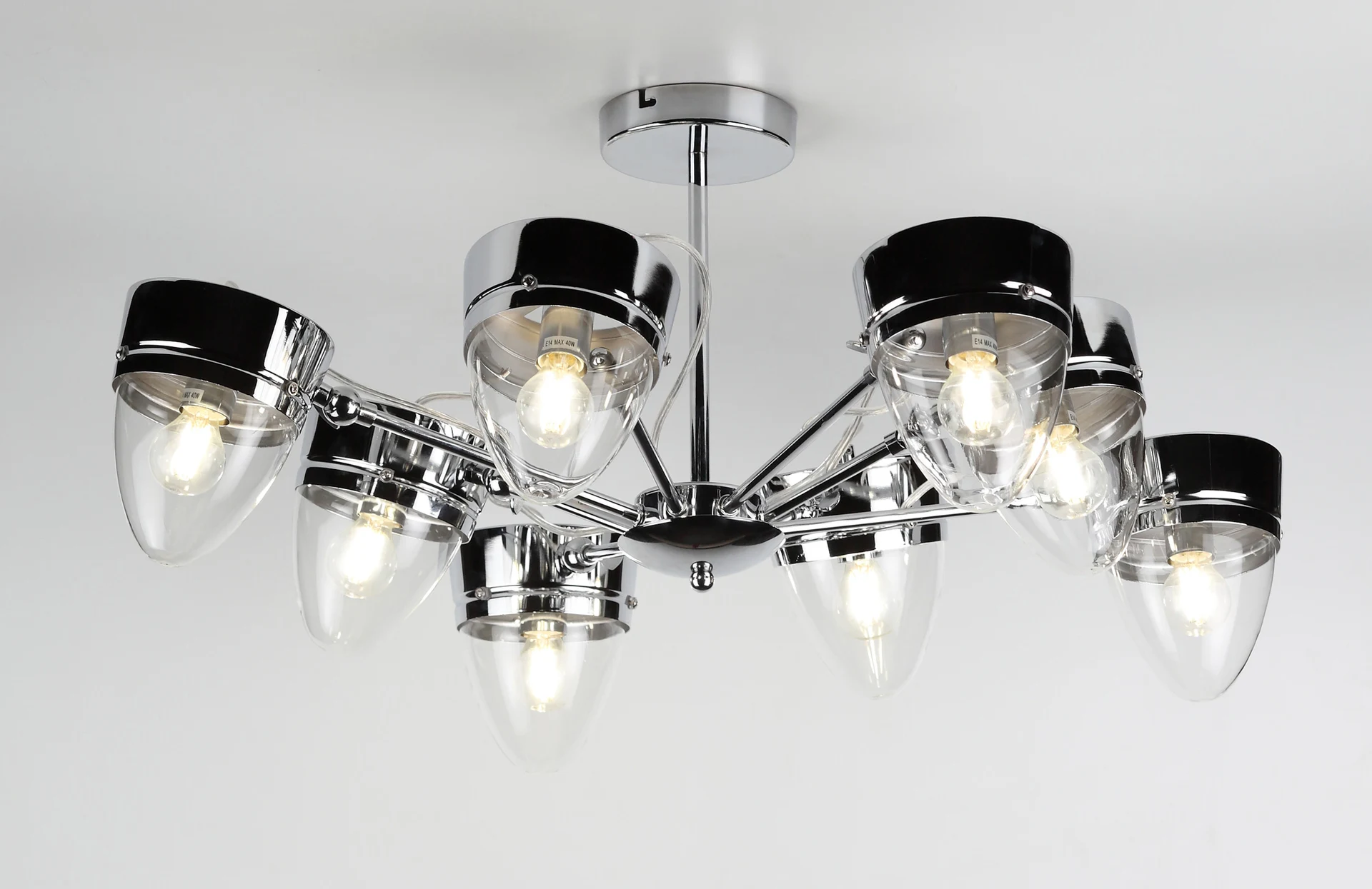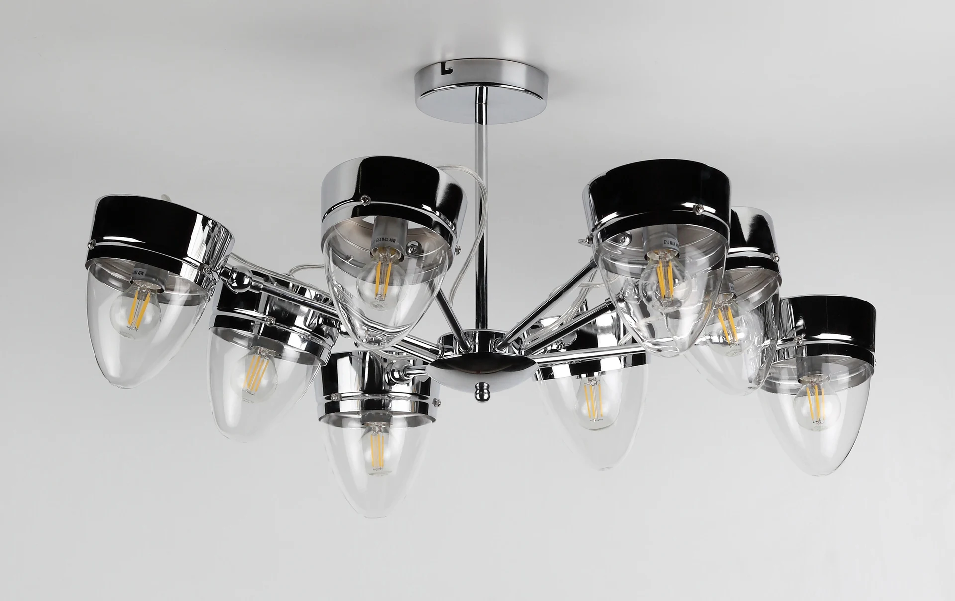 Потолочная люстра Rivoli Falco 3032-308 от Rivoli, подходит для гостиной, в стиле лофт. Материал — металл, цвет хром, плафон из стекла, форма плафона — конус. Модель имеет 8 ламп, цоколь E14, мощность 40 Вт. Направление света — вниз. Габариты: высота 300 мм, ширина 770 мм. Коллекция Falco.