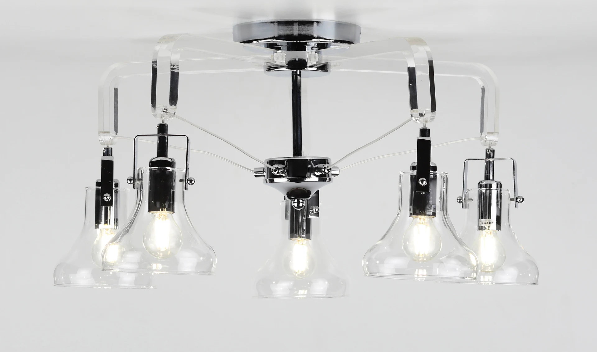 Потолочная люстра Rivoli Scomparsa 3031-305 от Rivoli, подходит для гостиной, в стиле лофт. Материал — металл, цвет хром, плафон из стекла, форма плафона — круглый плафон. Модель имеет 5 ламп, цоколь E14, мощность 40 Вт. Направление света — вниз. Габариты: высота 330 мм, ширина 630 мм. Коллекция Scomparsa.