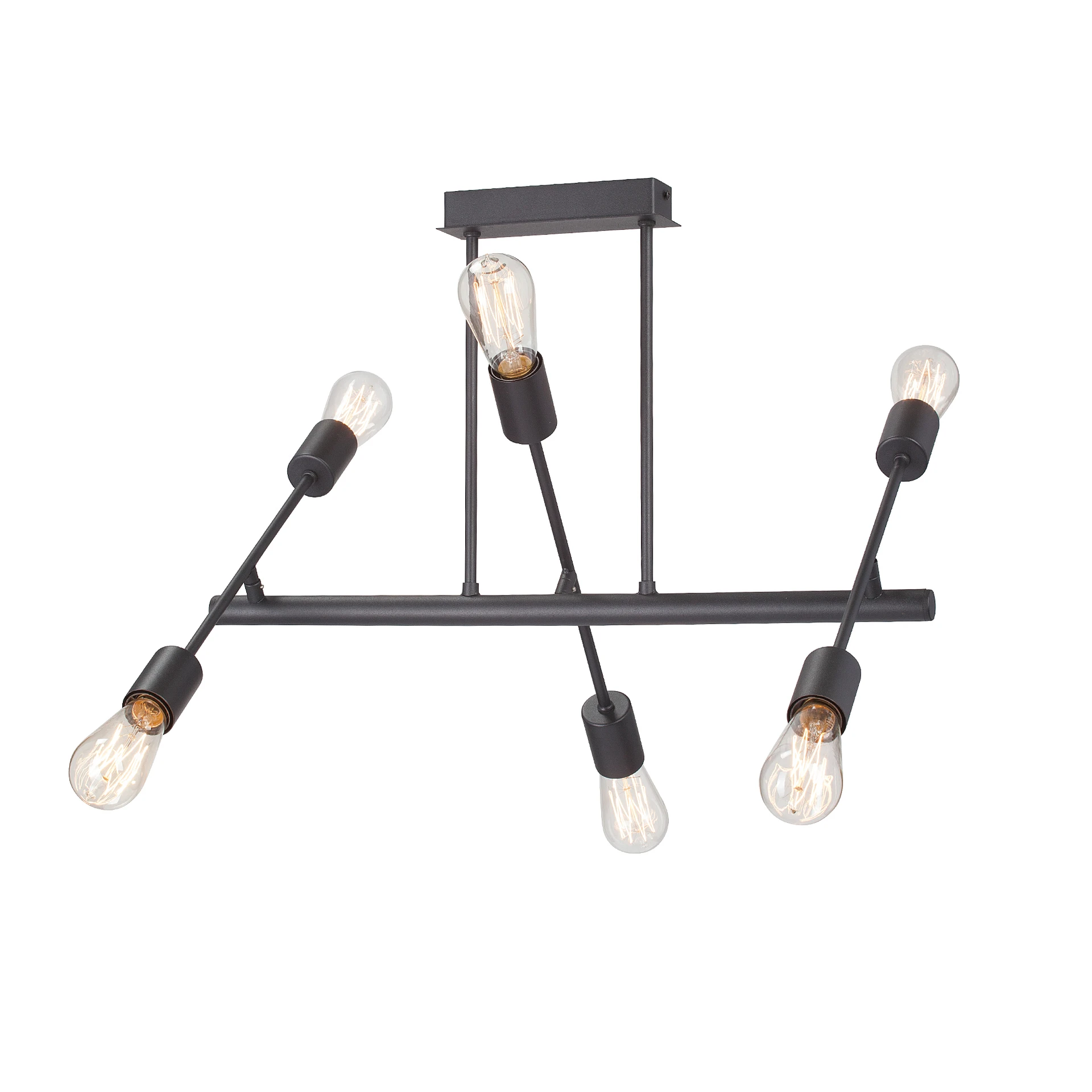 Потолочная люстра Vitaluce V3010-1/6PL от Vitaluce — люстры. Материал — металл, цвет черный, форма плафона — длинные. Модель имеет 6 ламп, цоколь E27, мощность 240 Вт, площадь освещения до 18 кв. м. Направление света — вверх/вниз, крепление — планка. Габариты: высота 450 мм, ширина 600 мм. Коллекция V3010.