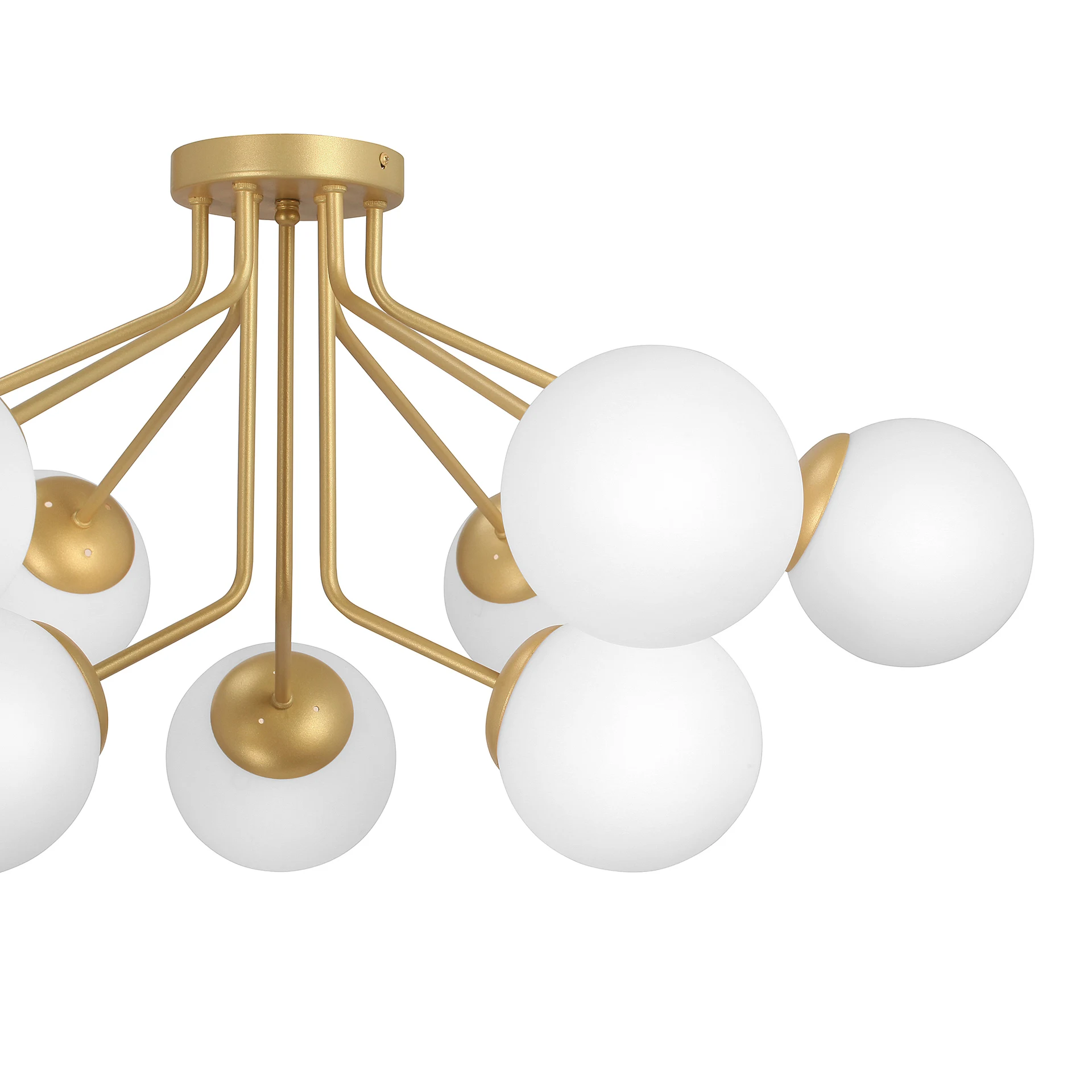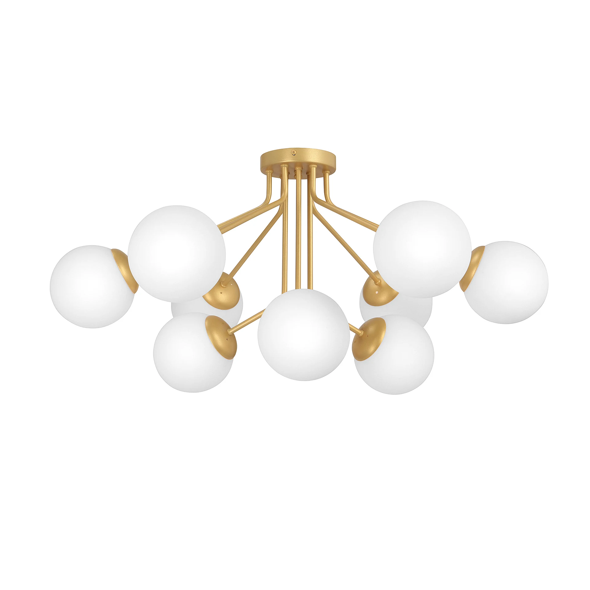 Потолочная люстра Vitaluce V4287-8/9PL от Vitaluce — люстры. Материал — металл, цвет золото, плафон из стекла, цвет плафона молочный, форма плафона — шар. Модель имеет 9 ламп, цоколь E14, мощность 360 Вт, площадь освещения до 27 кв. м. Направление света — вниз, крепление — планка. Габариты: высота 420 мм, ширина 880 мм, диаметр 880 мм. Коллекция V4287.