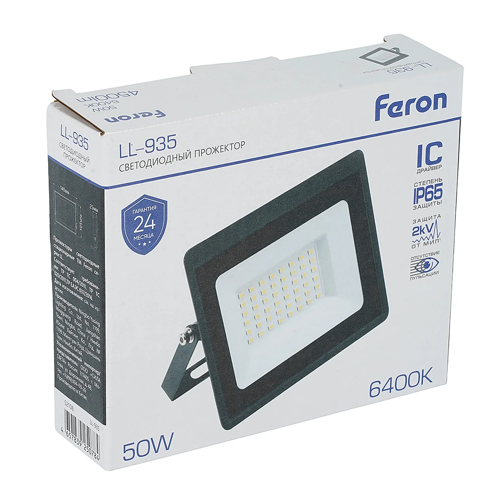 На Прожектор уличный Feron LL-935 52108 от Feron действует официальная гарантия производителя — от 2 лет и более. По вопросам гарантии в Беларуси обращайтесь по телефону +375 (29) 801 91 06 или на info@marketsveta.by.