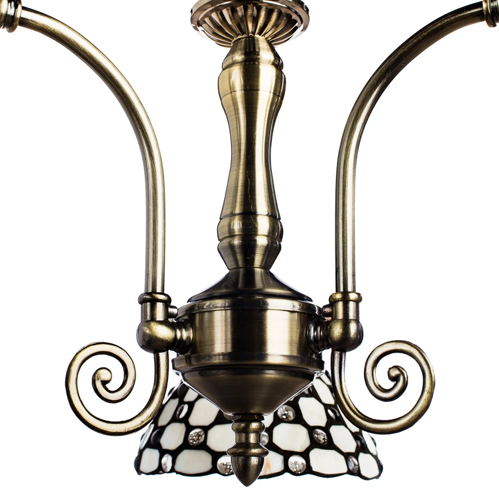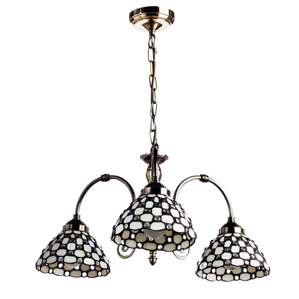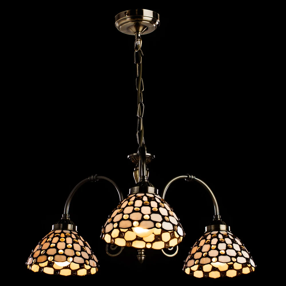 Подвесная люстра Arte Lamp RAINDROP A3168LM-3AB от Arte Lamp, подходит для кухни, для гостиной, для спальни, для кабинета, в стиле мозаика, тиффани, ретро. Материал — металл, цвет античная бронза, плафон из стекла тиффани, цвет плафона кремовый. Модель имеет 3 лампы, цоколь E27, мощность 60 Вт. Крепление — скоба. Степень защиты IP20. Габариты: высота 290 мм, ширина 590 мм, диаметр 590 мм. Коллекция Raindrop.