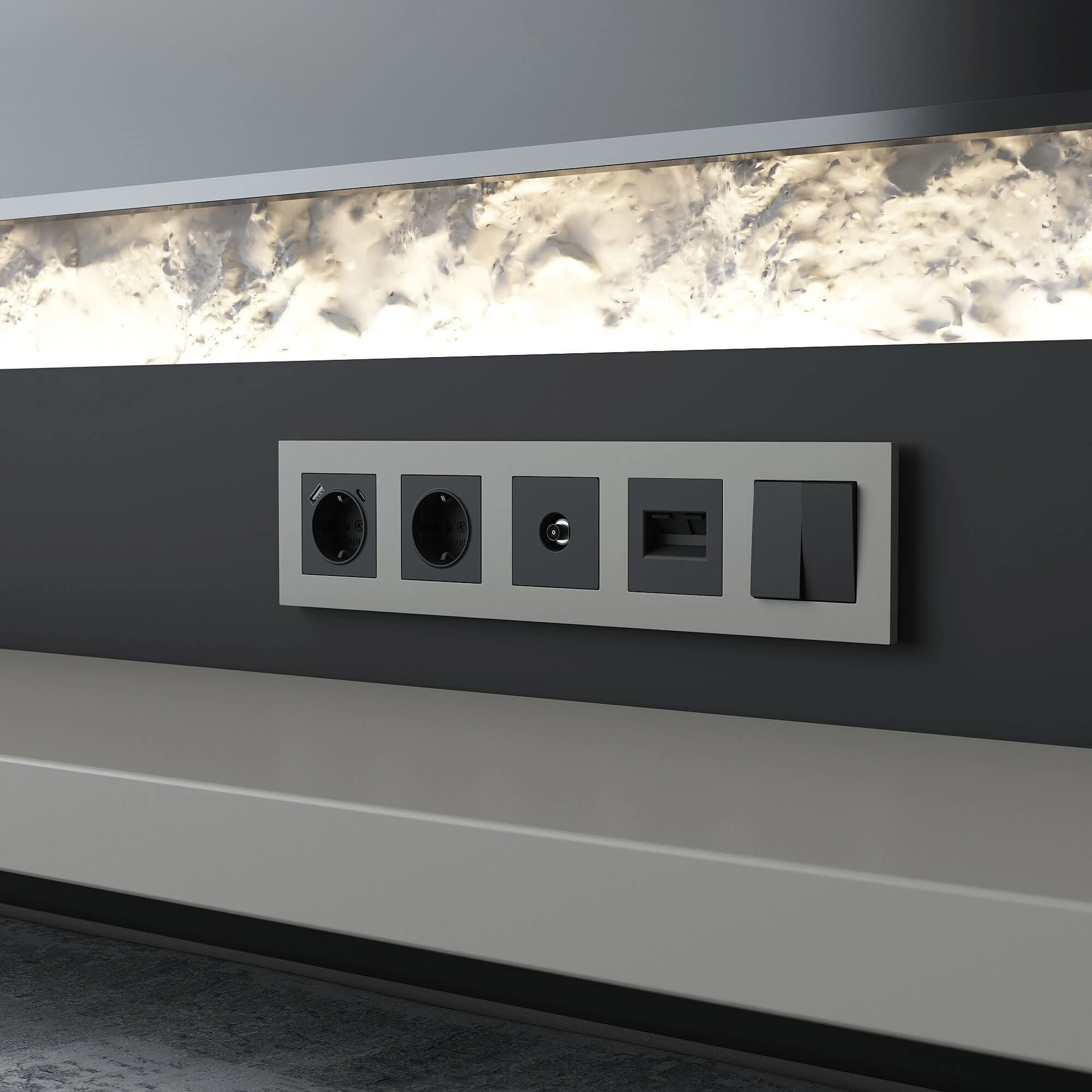 Рамка Werkel W0052917/ Рамка на 5 постов Slab (дымчатый софт) от Werkel — электротовары. Цвет серый. Габариты: высота 11 мм, ширина 95 мм, диаметр 58 х 58. Коллекция Slab дымчатый софт, количество постов — 5.
