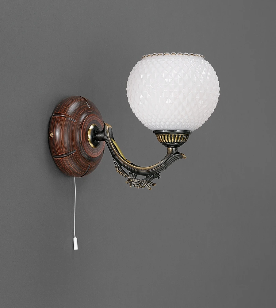 Настенное бра Reccagni Angelo 8660 A.8660/1 от Reccagni Angelo, подходит для гостиной, в стиле классика. Материал — дерево, цвет бронза темная, плафон из стекла, цвет плафона белый, форма плафона — шар. Модель имеет 1 лампу, цоколь E27, мощность 60 Вт. Поддержка диммера. Степень защиты IP20. Габариты: высота 200 мм, ширина 200 мм. Коллекция 8660, бра — С плафонами, бра — Дерево.