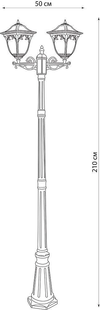 Столб фонарный уличный Feron 11487 от Feron, в стиле классика. Материал — металл, цвет бронза, форма плафона — прозрачный. Модель имеет 2 лампы, цоколь E27. Направление света — вверх. Степень защиты IP44. Габариты: высота 2100 мм, ширина 180 мм. Коллекция Афина, световой поток — 1055, фонарный столб — Направление вверх.