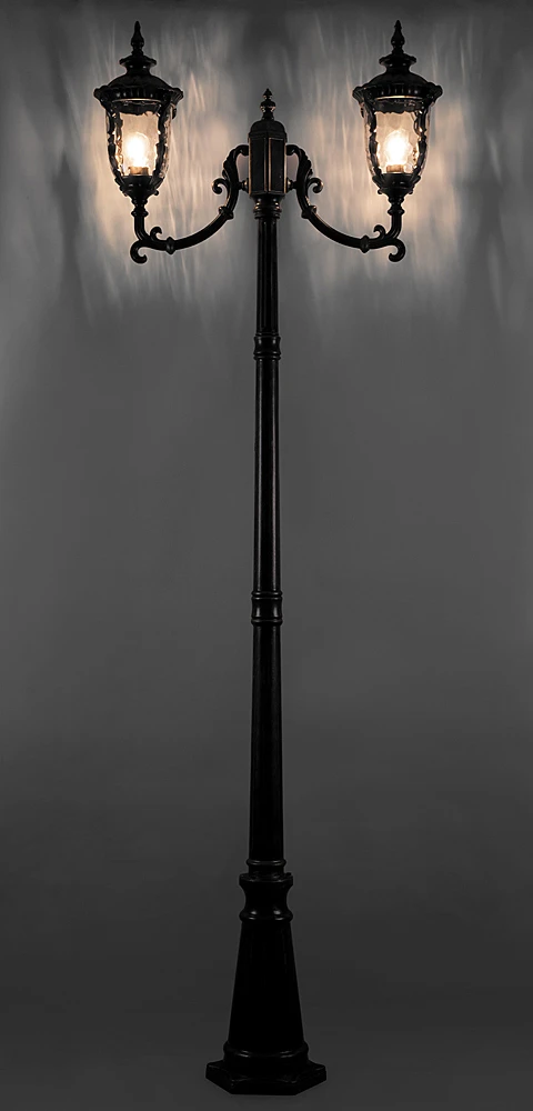 Столб фонарный уличный Feron 11498 от Feron, в стиле классика. Материал — металл, цвет черный, форма плафона — круглый плафон. Модель имеет 2 лампы, цоколь E27. Направление света — вверх. Степень защиты IP44. Габариты: высота 2200 мм, ширина 190 мм. Коллекция Шербур, световой поток — 350, фонарный столб — Направление вверх.