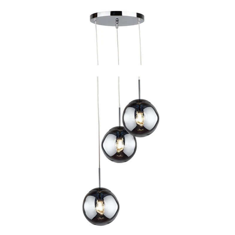 Светильник подвесной AM Group Am352 AM352-3CH от AM Group, для установки на потолок. Цвет хром, плафон из стекла, форма плафона — шар. Модель имеет 3 лампы, цоколь E27, мощность 120 Вт, площадь освещения до 6 кв. м. Поддержка диммера, направление света — вниз, крепление — планка. Степень защиты IP20. Габариты: высота 1500 мм. Коллекция Am352.