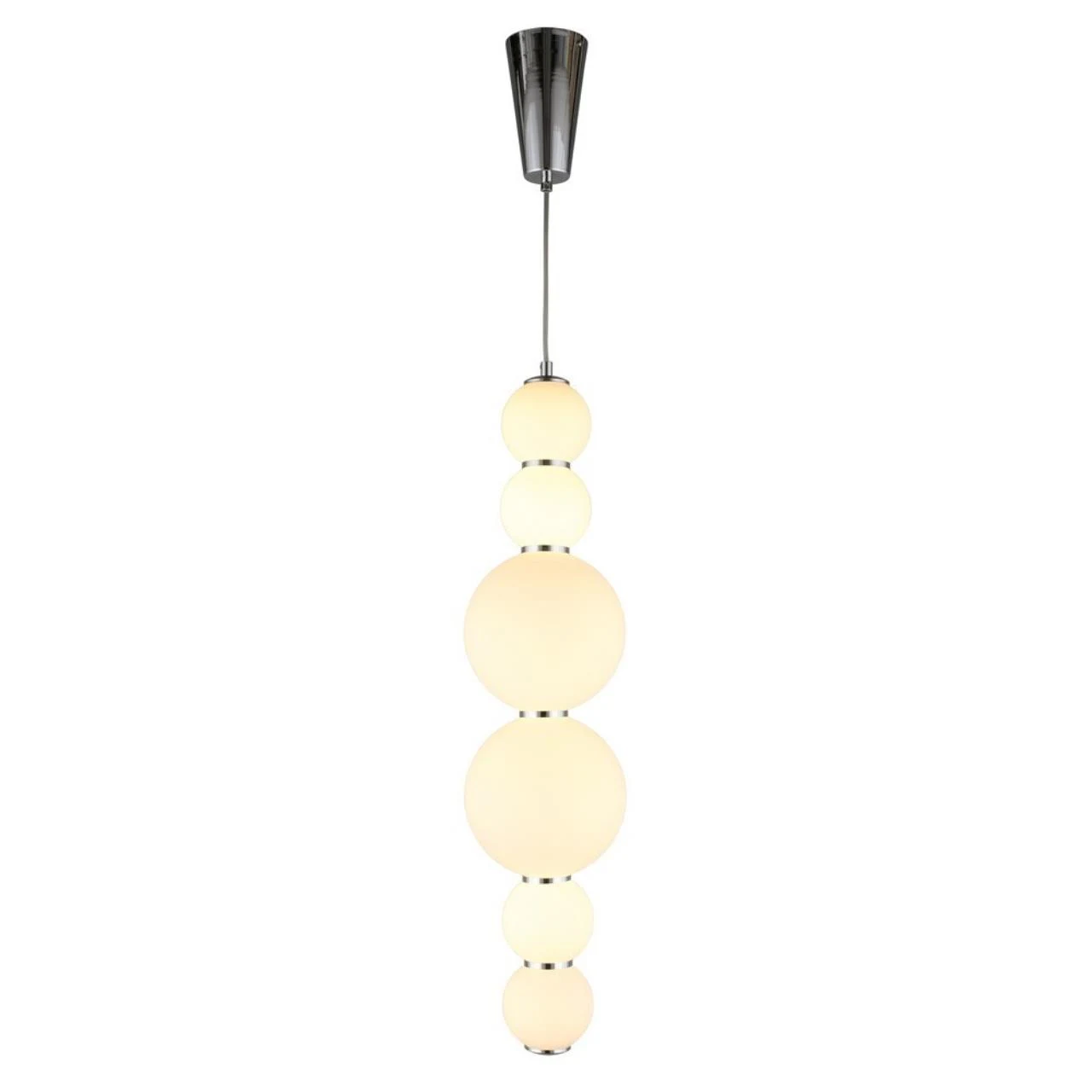 Светильник подвесной Aployt Arabel APL.009.06.24 от Aployt, подходит для кухни, для гостиной, для спальни, в стиле современный. Материал — металл, цвет хром, плафон из стекла, цвет плафона белый, форма плафона — шар. Модель имеет 1 лампу, цоколь LED, мощность 24 Вт. Крепление — планка. Степень защиты IP20. Габариты: высота 2000 мм, ширина 180 мм, диаметр 180 мм. Коллекция Arabel, световой поток — 1320.