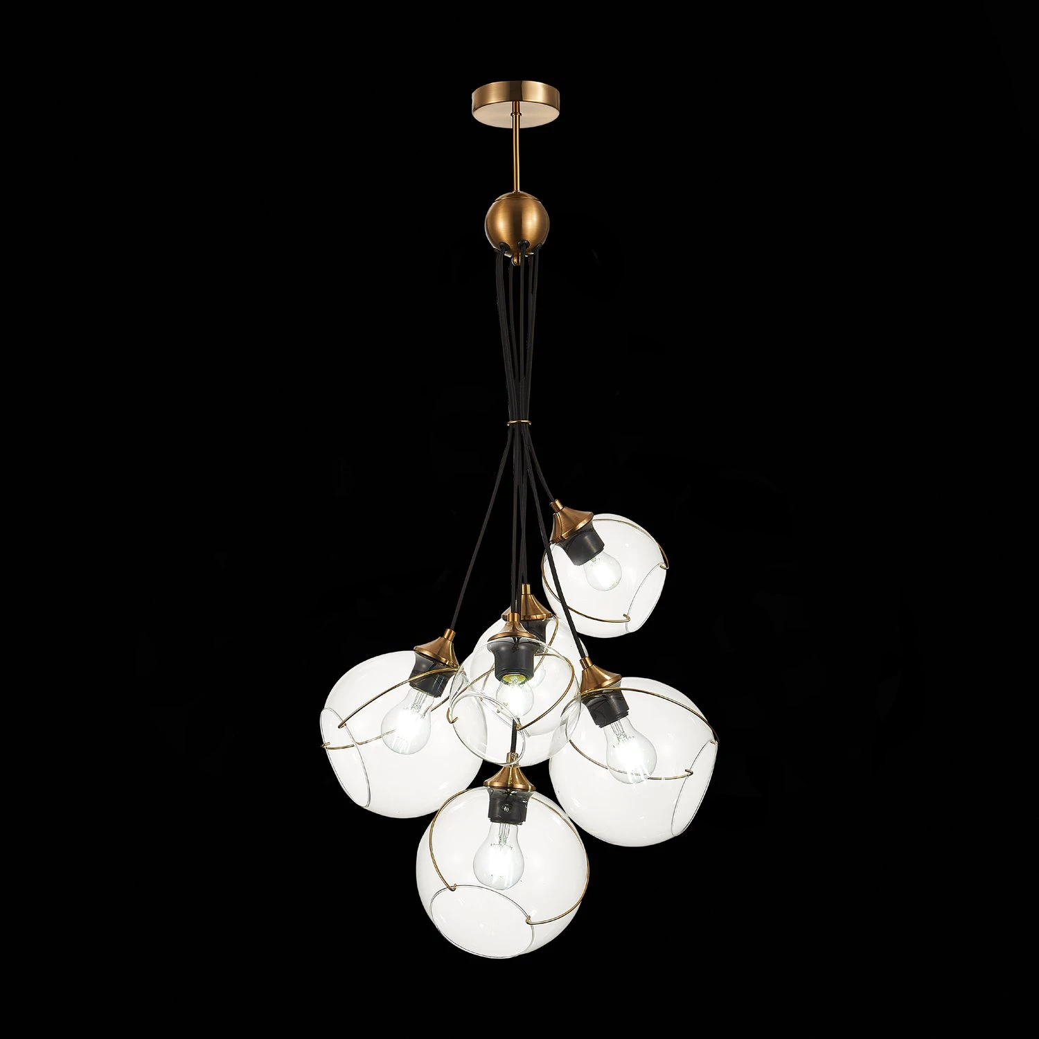 Светильник подвесной Evoluce Satturo SLE103103-06 от Evoluce — светильники. Материал — металл, цвет золото, плафон из стекла, цвет плафона прозрачный, форма плафона — шар. Модель имеет 6 ламп, цоколь E27, мощность 360 Вт, площадь освещения до 18 кв. м. Крепление — планка. Габариты: высота 1200 мм, ширина 350 мм, диаметр 350 мм. Коллекция Satturo.