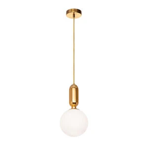 Светильник подвесной Loft It Parachilna 9974-A от Loft It, подходит для спальни, в стиле хай-тек. Материал — металл, цвет золото, плафон из стекла, цвет плафона белый, форма плафона — шар. Модель имеет 1 лампу, цоколь E27, мощность 40 Вт, площадь освещения до 2 кв. м. Направление света — вниз. Степень защиты IP20. Габариты: ширина 150 мм, диаметр 150 мм. Коллекция Parachilna.